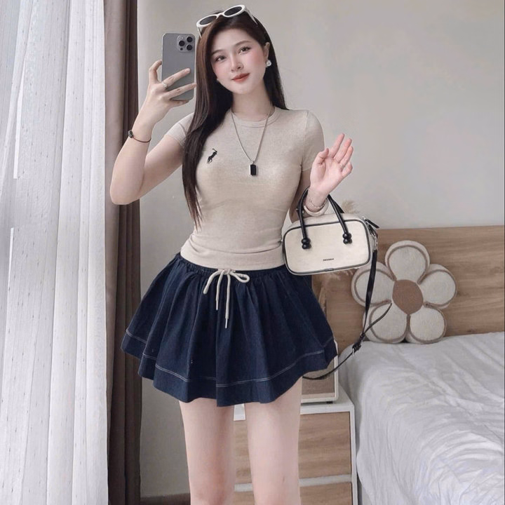 Set Áo Thun Tăm Mix Chân Váy Có Quần Trong Bt110Rd