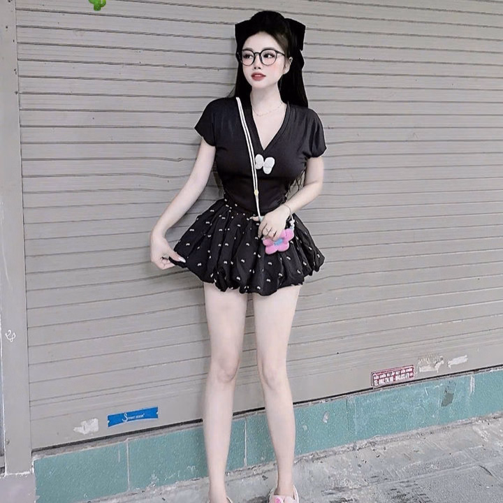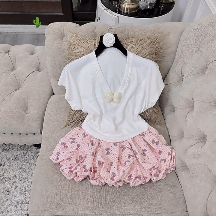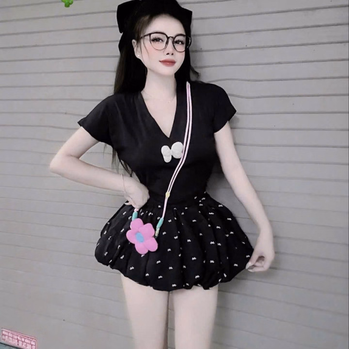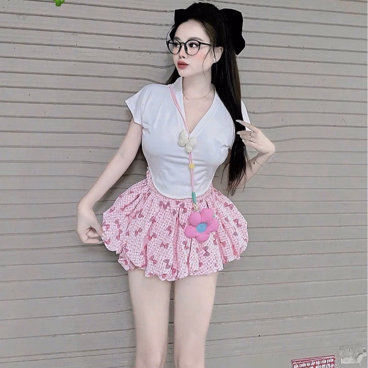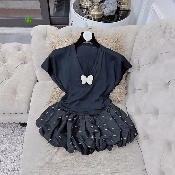 Set Áo Tim Đính Nơ Kèm Chân Váy Hoạ Tiết – Lê Phương Boutique