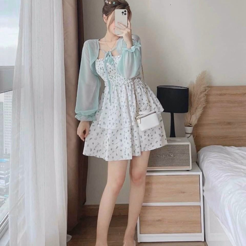 Set Áo Voan Kèm Đầm Xốp In Hoa Nhí ( Váy Có Lót ) V43 – Haka Mây