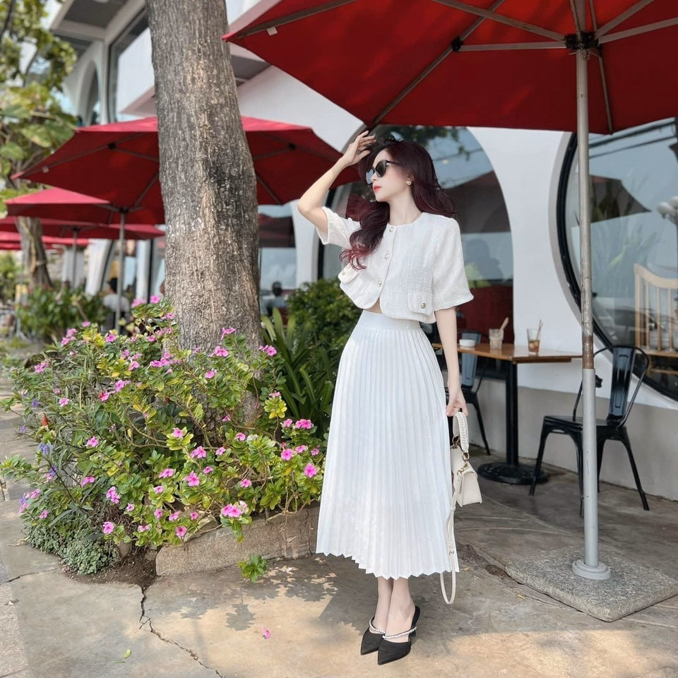 Set Áo Xốp Caro Cài Nút Thật Kèm Chân Váy Voan Dập Ly T667 – Aine