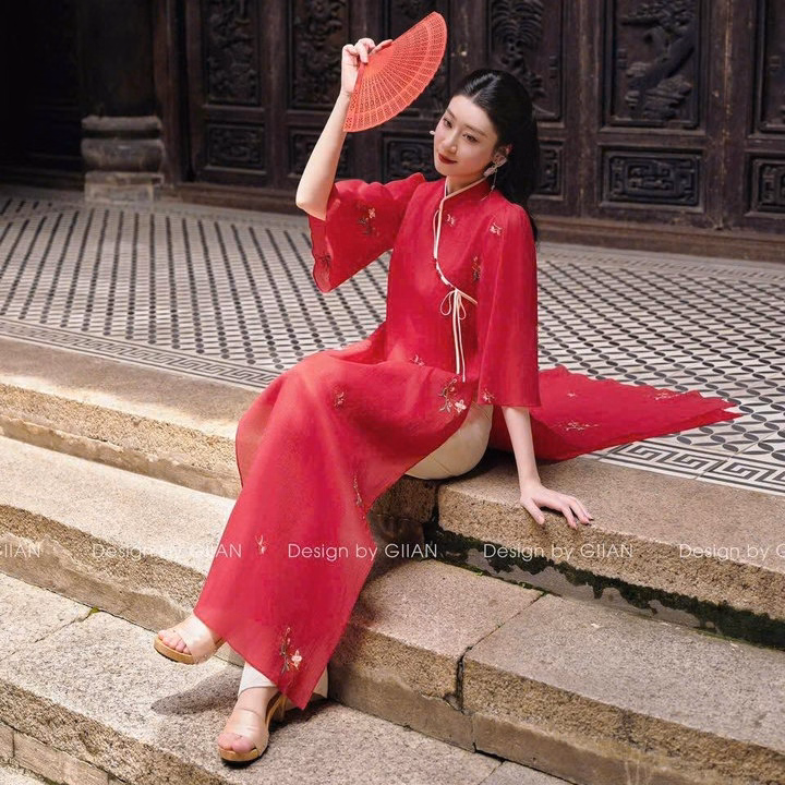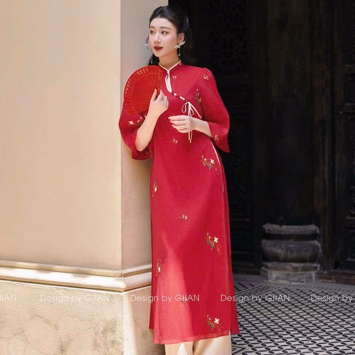 Set Bộ Áo Dài Cách Tân Tơ Xốp Thêu Hoa Phối Quần Latin Mht1370- Nana House