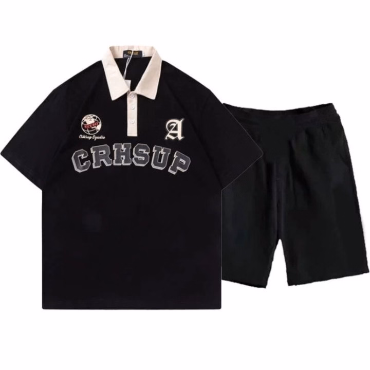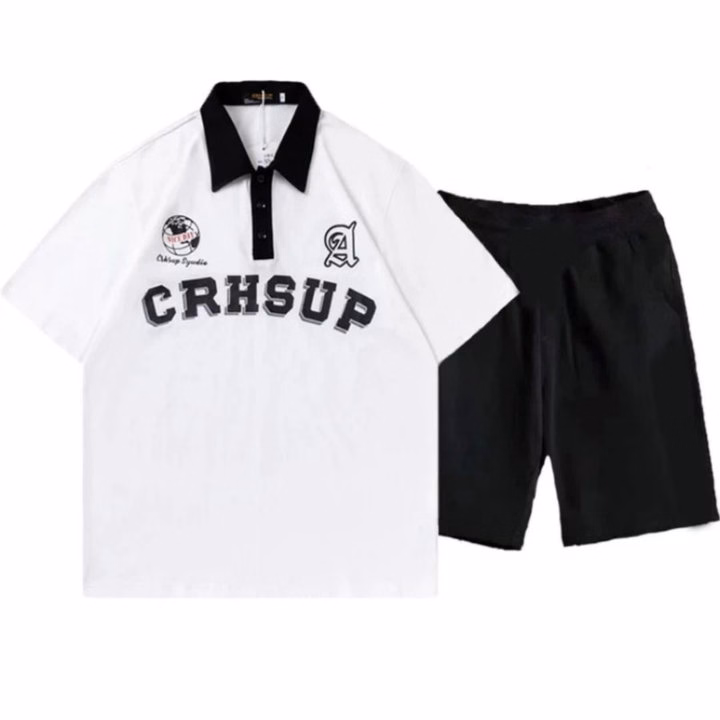 Sét Bộ Áo Polo Crh – Sup Cổ Bẻ Form Rộng + Mix Với Quần Đùi Cotton Su Cạp Chun