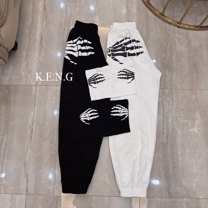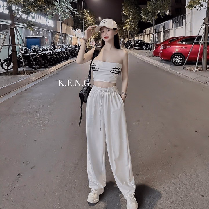 Set Bộ Áo Quây In Bàn Tay Crotop Phối Quần Ống Rộng Dài Thể Thao -Htm Fashion