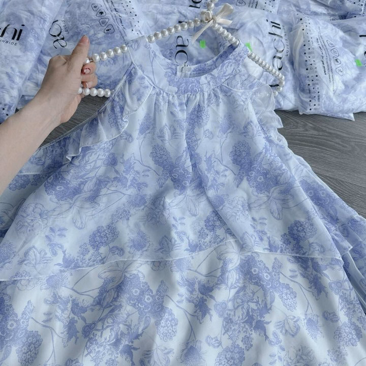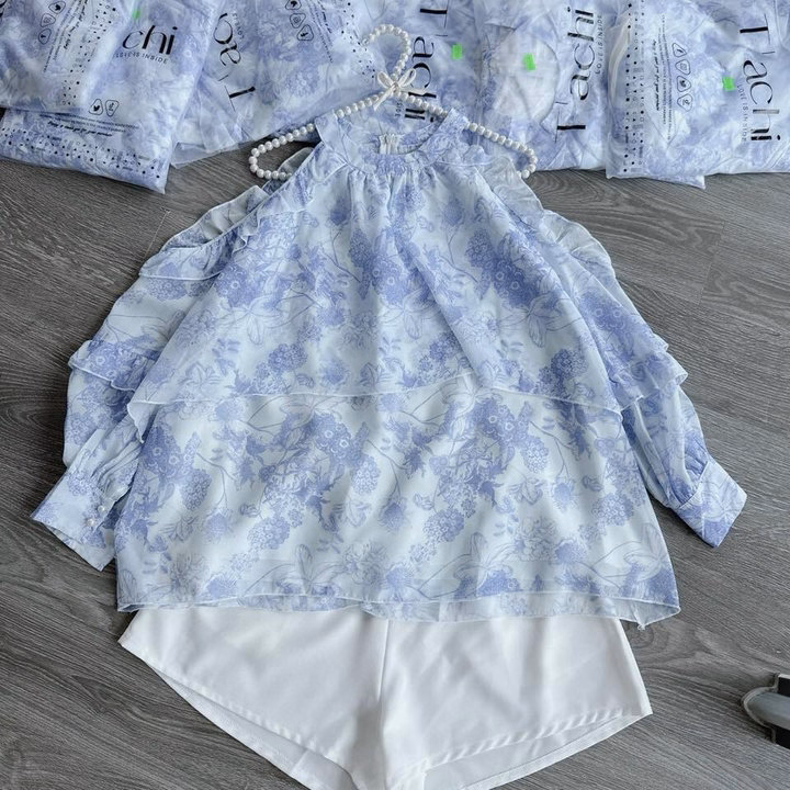 Set Bộ Áo Voan In 2 Lớp Cổ Yếm Tầng Mix Quần Mango Bth1105- Nana House