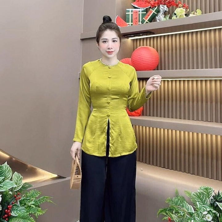 Set Bộ Bà Ba Nút Bọc Cổ Đính Ngọc St1202- Sam Freesize < 53kg Với tone sang chảnh dành cho các nàng diện đi chơi siêu xinh Kiểu dáng đơn giản,dễ thương,không kén dáng người mặc Thích hợp đi tiệc,cà phê, dạo phố.... V1 ( Vòng ngực): dưới 92cm V2 (Vòng Eo): dưới 78cm V3 : Dưới 92cm ☘ 1m50 – 1m55 từ 40 – 46kg vừa ☘ 1m55 – 1m6 từ 47 – 53kg vừa Chất liệu : Áo Lụa - Quần Tuyết Nhung Xuất xứ : Việt Nam Kích thước : Freesize < 53kg Lưu ý : - Do sự chênh lệch về cài đặt ánh sáng và màn hình,màu sắc của sản phẩm thực tế có sự chênh lệch nhẹ so với thực tế. - Do đo lường thủ công khác nhau,có thể có sai số 1-3cm nhưng trong phạm vi cho phép. - Giặt riêng sản phẩm Mới bằng tay với nước lạnh và phơi khô tự nhiên (tuyệt đối không sử dụng sản phẩm với các loại bột giặt có chất tẩy cao) - Lộn mặt trái trước khi giặt để đảm bảo độ bền màu của sản phẩm. - Quý khách nhận được hàng nếu có thắc mắc vui lòng liên hệ shop trước khi đánh giá sản phẩm.Quý khách nhận được hàng,ưng sản phẩm cho shop xin 1 đánh giá 5 sao kèm hình ảnh sản phẩm nhé. - Một số sản phẩm của shop là hàng Freesize, shop đều ghi rõ số kg, màu sắc,chất liệu đều được cung cấp rõ ràng.Những trường hợp sản phẩm bị lỗi,rách hoặc sản phẩm không giống hình hay kém chất lượng, khách phải cung cấp video khi khui hàng giúp shop nhé.