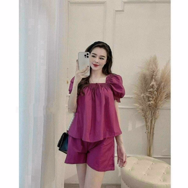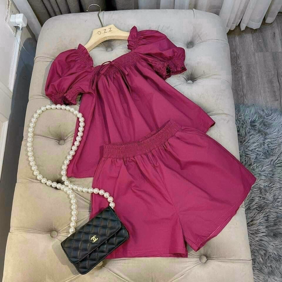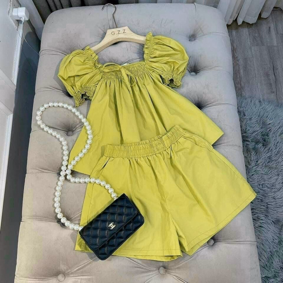 Tên sản phẩm: Set Bộ Đồ Đùi Áo Cổ Vuông Nhún Ngực Tay Ngắn Kèm Quần Short T938