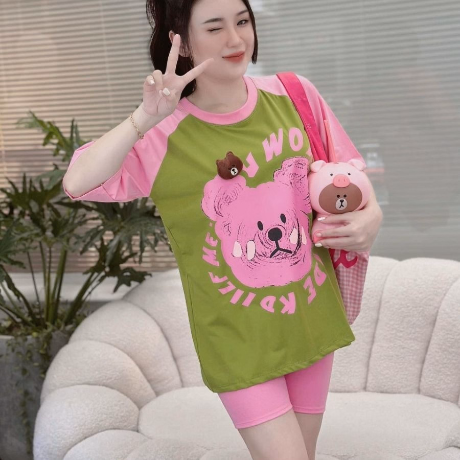 Set Bộ Đồ Đùi Áo Thun Cổ Tròn Tay Cộc Kèm Quần Thun V148H – Aine