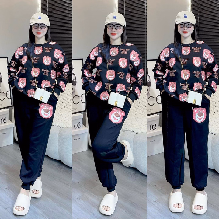 Sét Bộ Đồ Nỉ Nữ In Họa Tiết Gấu Look Siêu Hot – Htm Fashion