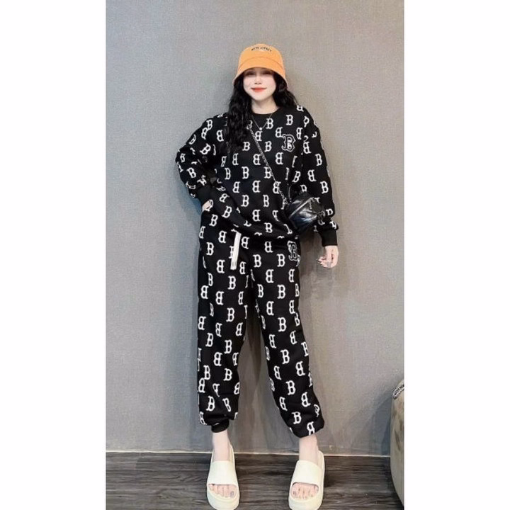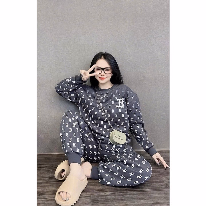 Sét Bộ Đồ Nỉ Nữ Thể Thao Cổ Tròn In Nhiều Họa Tiết Chữ B Hot Trend – Htm Fashion