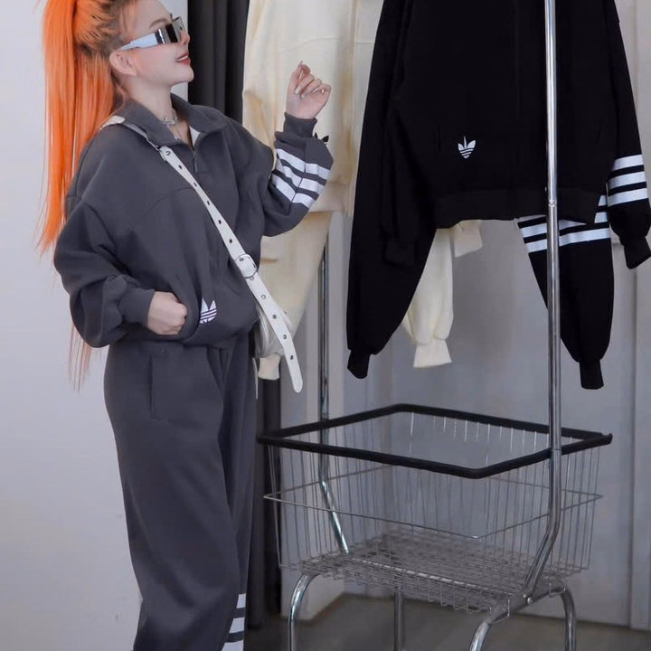 Sét Bộ Đồ Nỉ Uni 3 Sọc Thể Thao Nữ Cá Tính Hot Trend – Htm Fashion