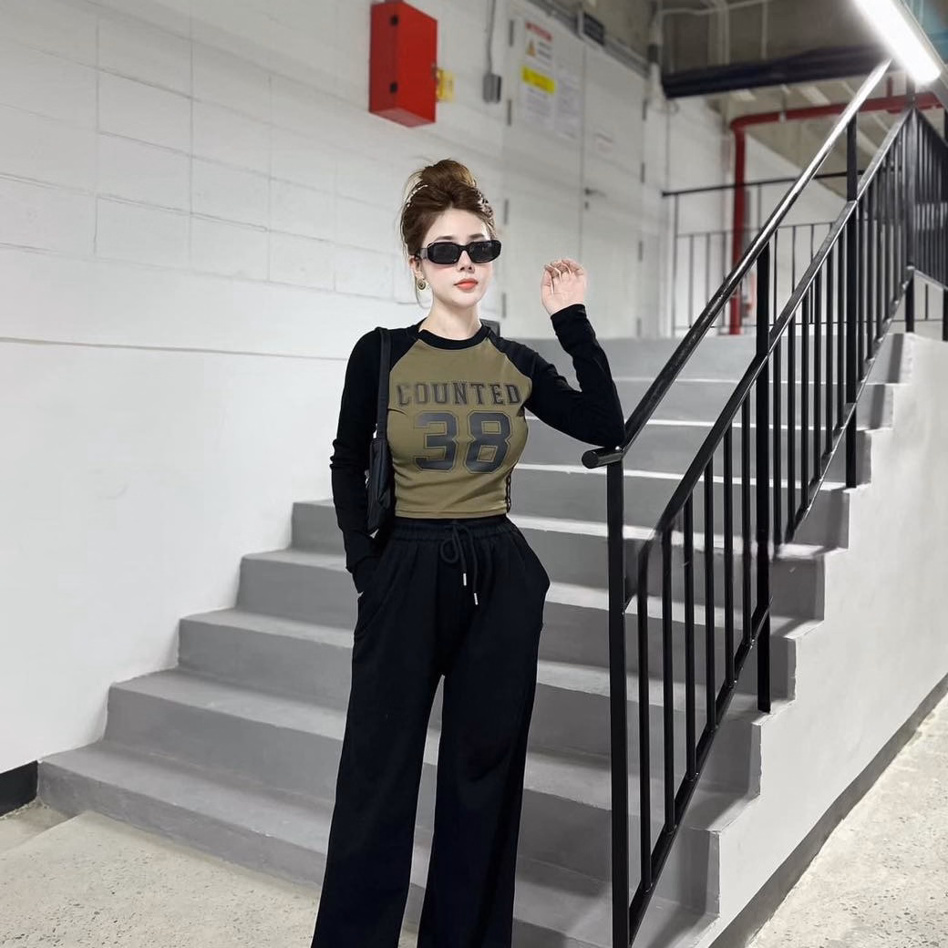 Set Bộ Đồ Nữ 38 Áo Crotop Tay Dài Mix Quần Ống Suông Bt855 – Nana House