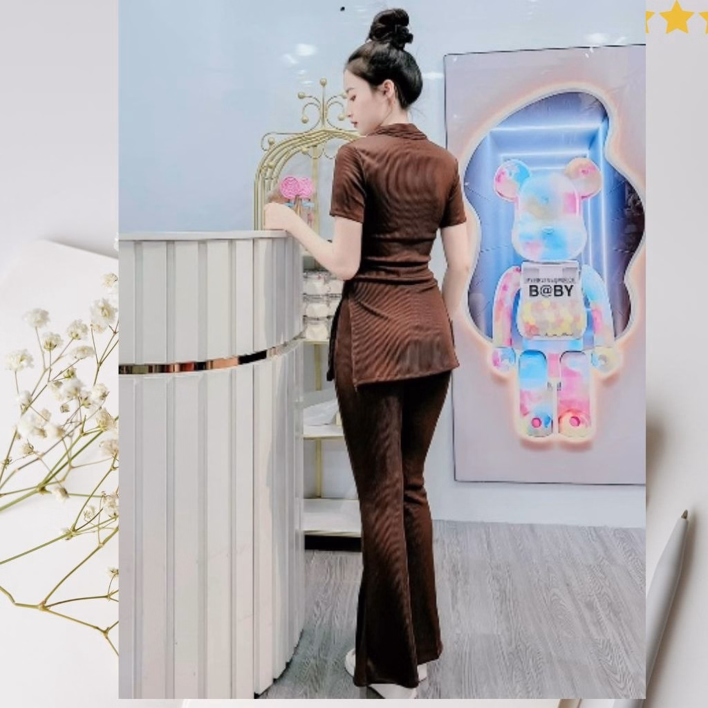 Set Bộ Đồ Nữ Áo Cổ Sơ Mi Tay Ngắn Xẻ Tà Kèm Quần Dài M889 – Lisa