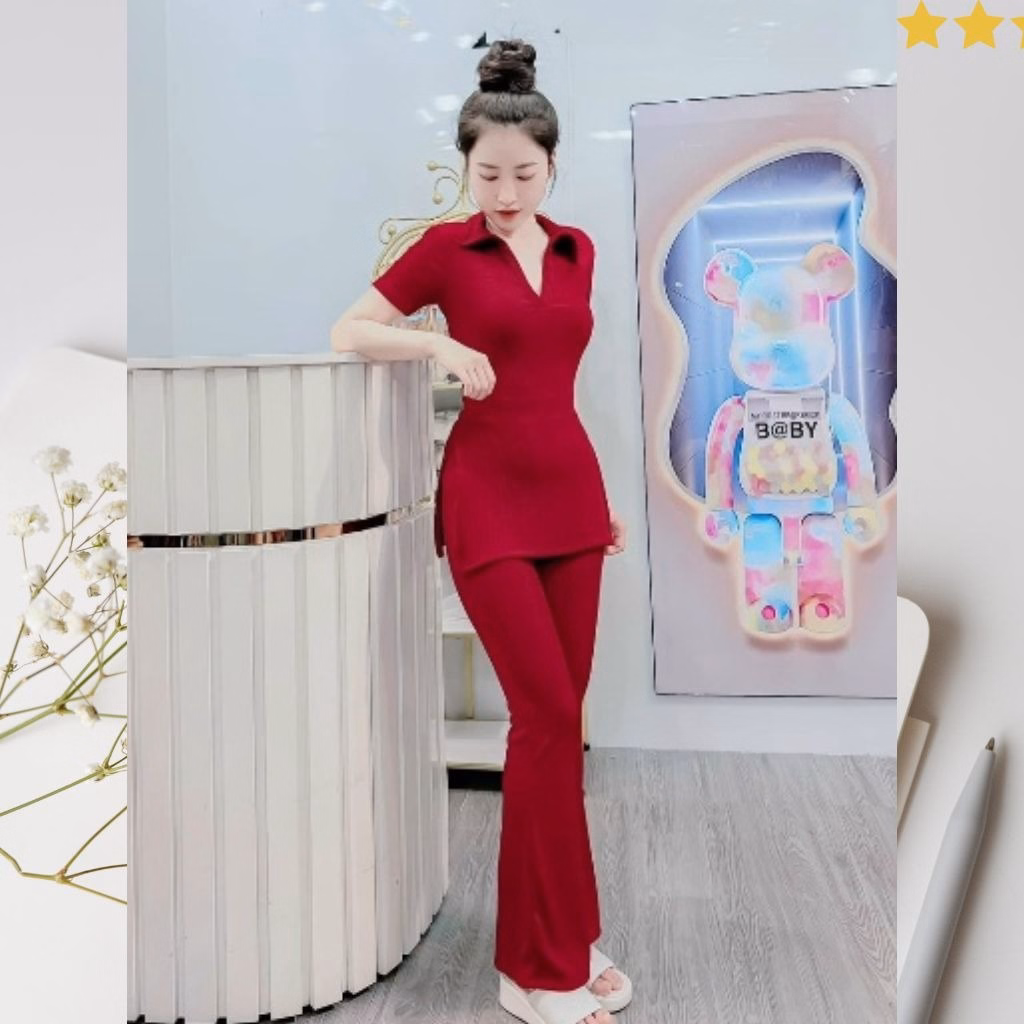 Set 3 Món Áo Sát Nách Thun Tăm Lạnh Phối Quần Ống Loe Bt92Ps