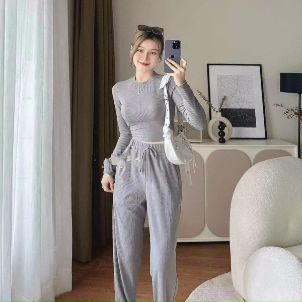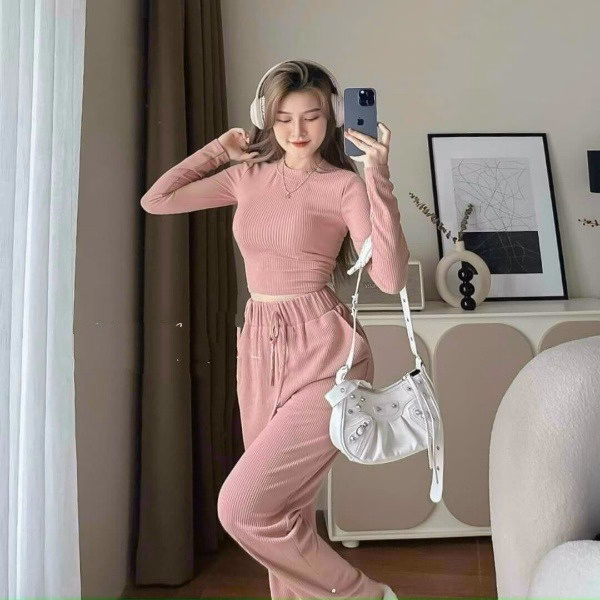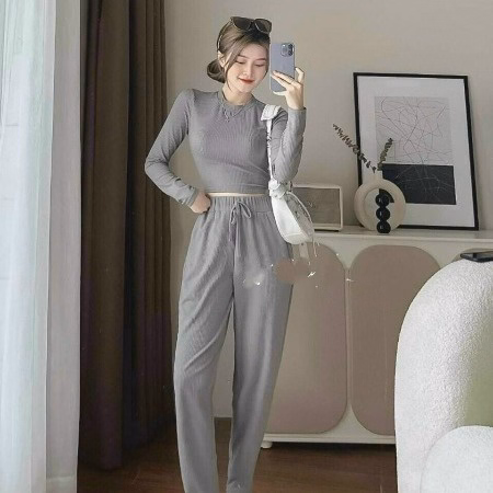 Tên sản phẩm: Set Bộ Đồ Nữ Áo Cổ Tròn Tay Dài Kèm Quần Dài Chất Thun Gân M845