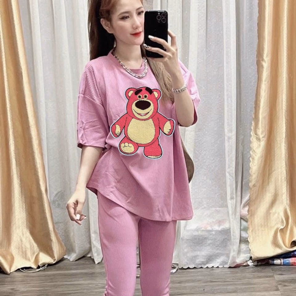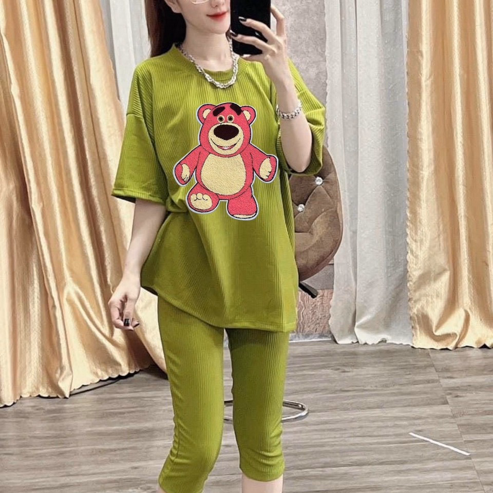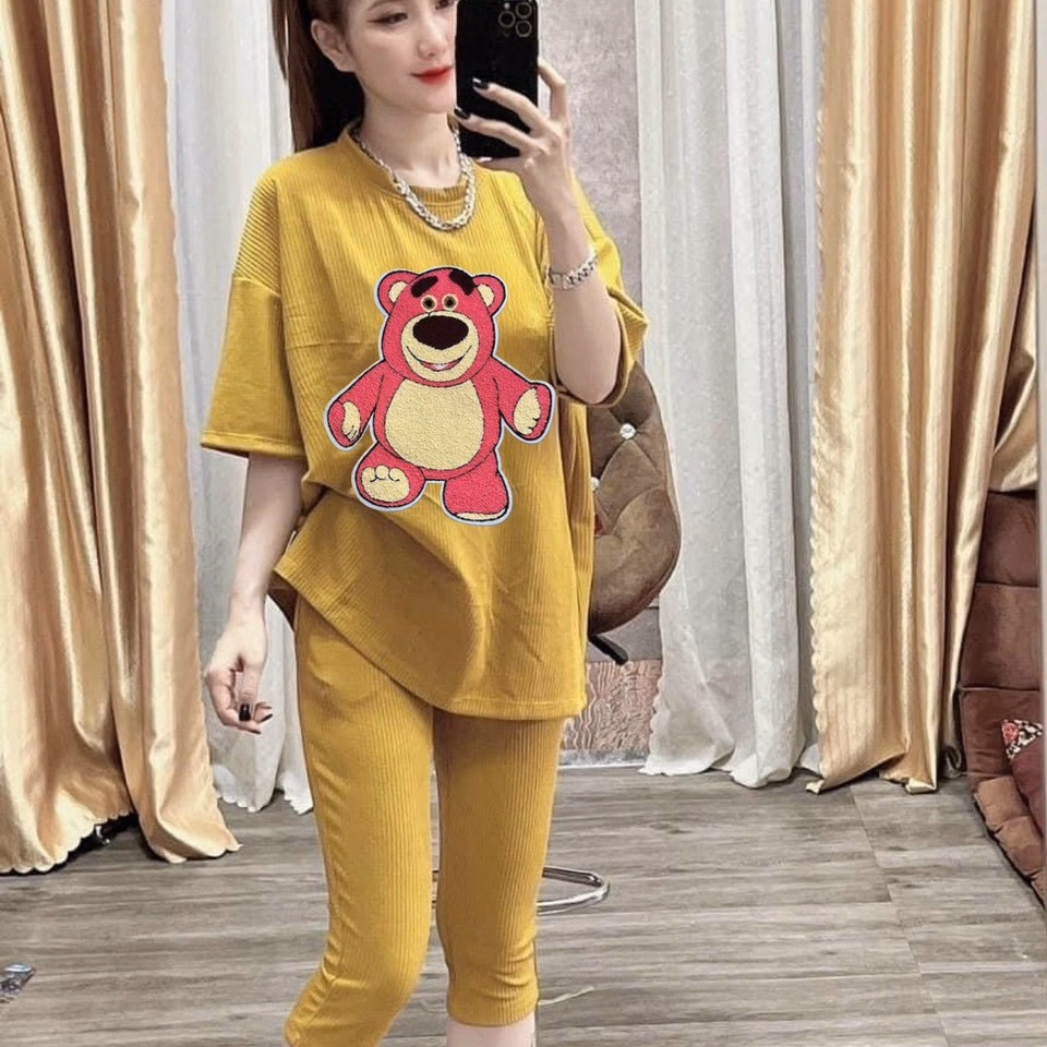 Tên sản phẩm: Set Bộ Đồ Nữ Áo Cổ Tròn Tay Ngắn Form Rộng Kèm Quần Lửng M1016