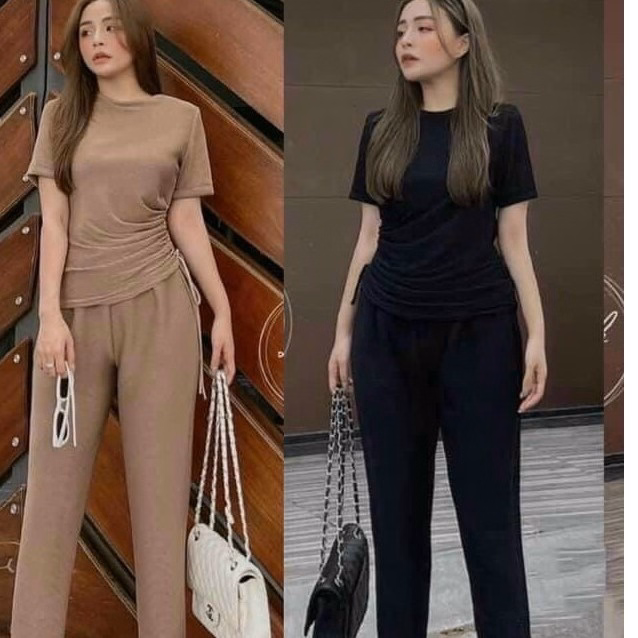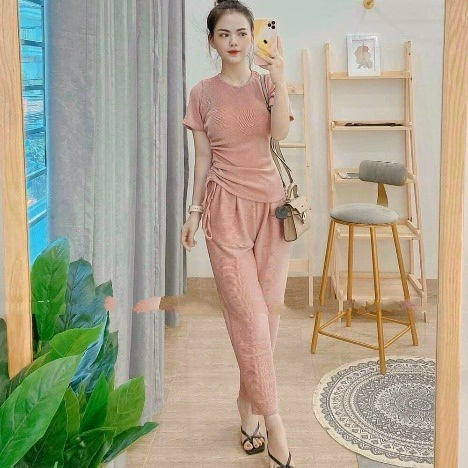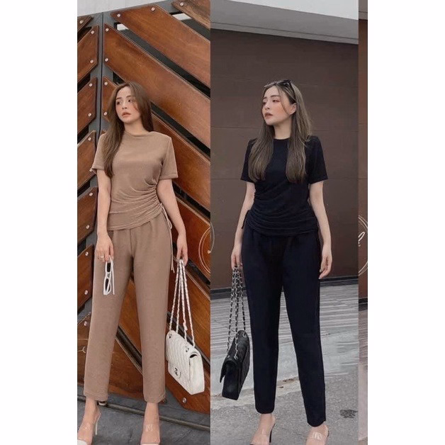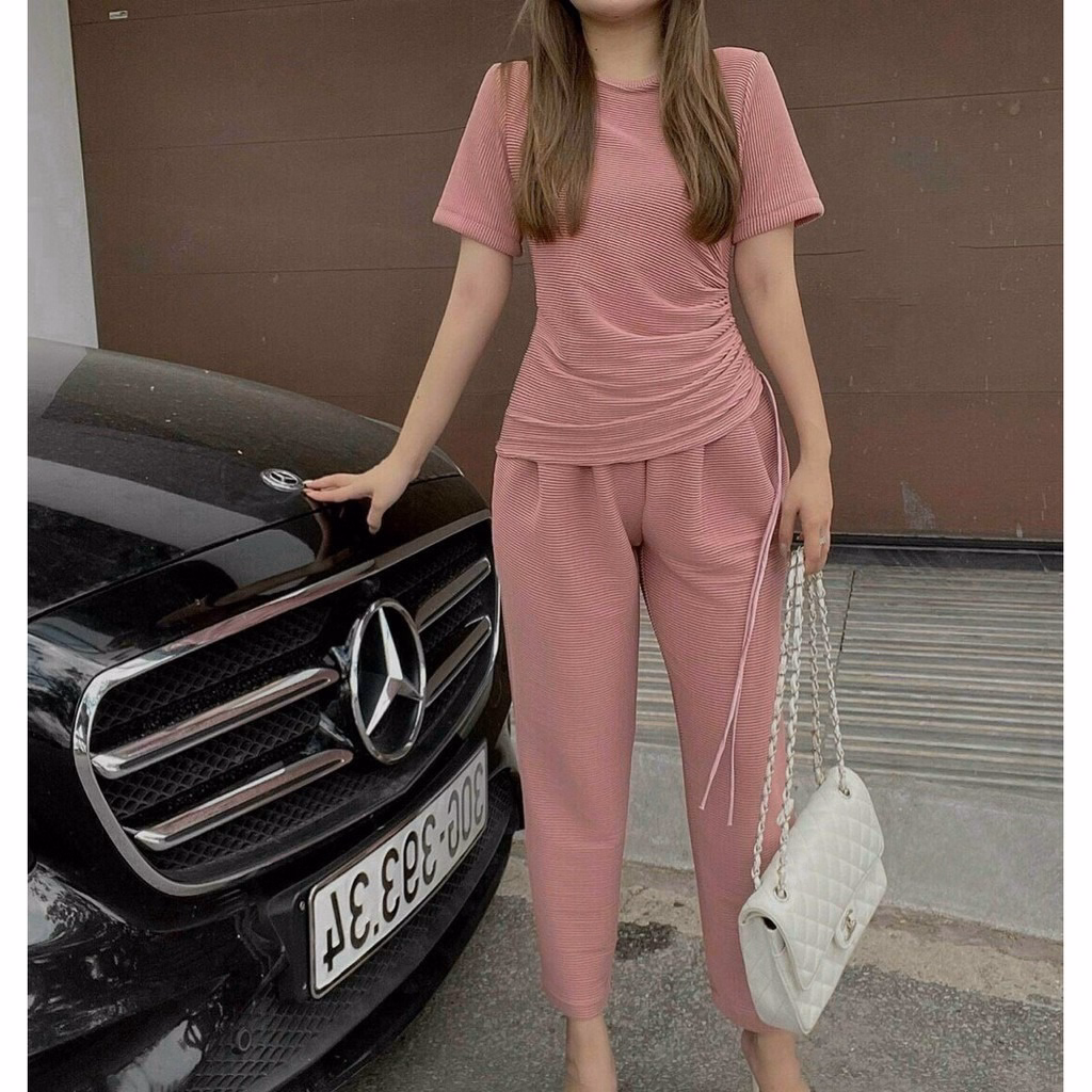 Tên sản phẩm: Set Bộ Đồ Nữ Áo Cổ Tròn Tay Ngắn Form Thụng Rút Dây Kèm Quần Dài T944