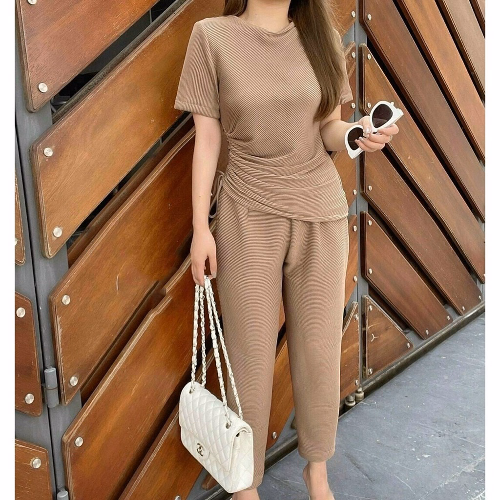 Set Bộ Đồ Nữ Áo Cổ Tròn Tay Ngắn Form Thụng Rút Dây Kèm Quần Dài T944 – Aine