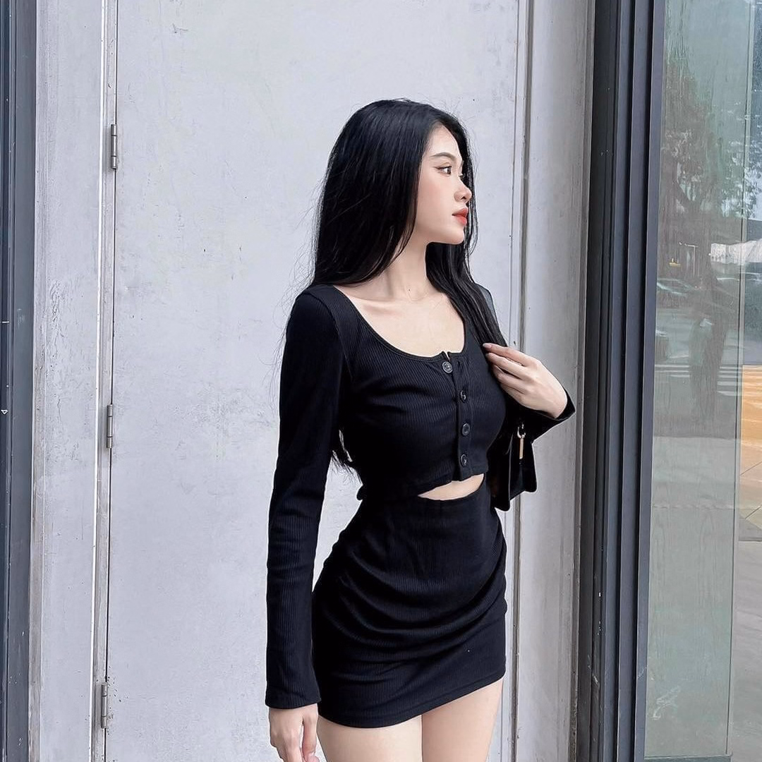 Set Bộ Đồ Nữ Áo Crotop Tay Dài Phối Váy Thun Gân Bt678 – Nana House