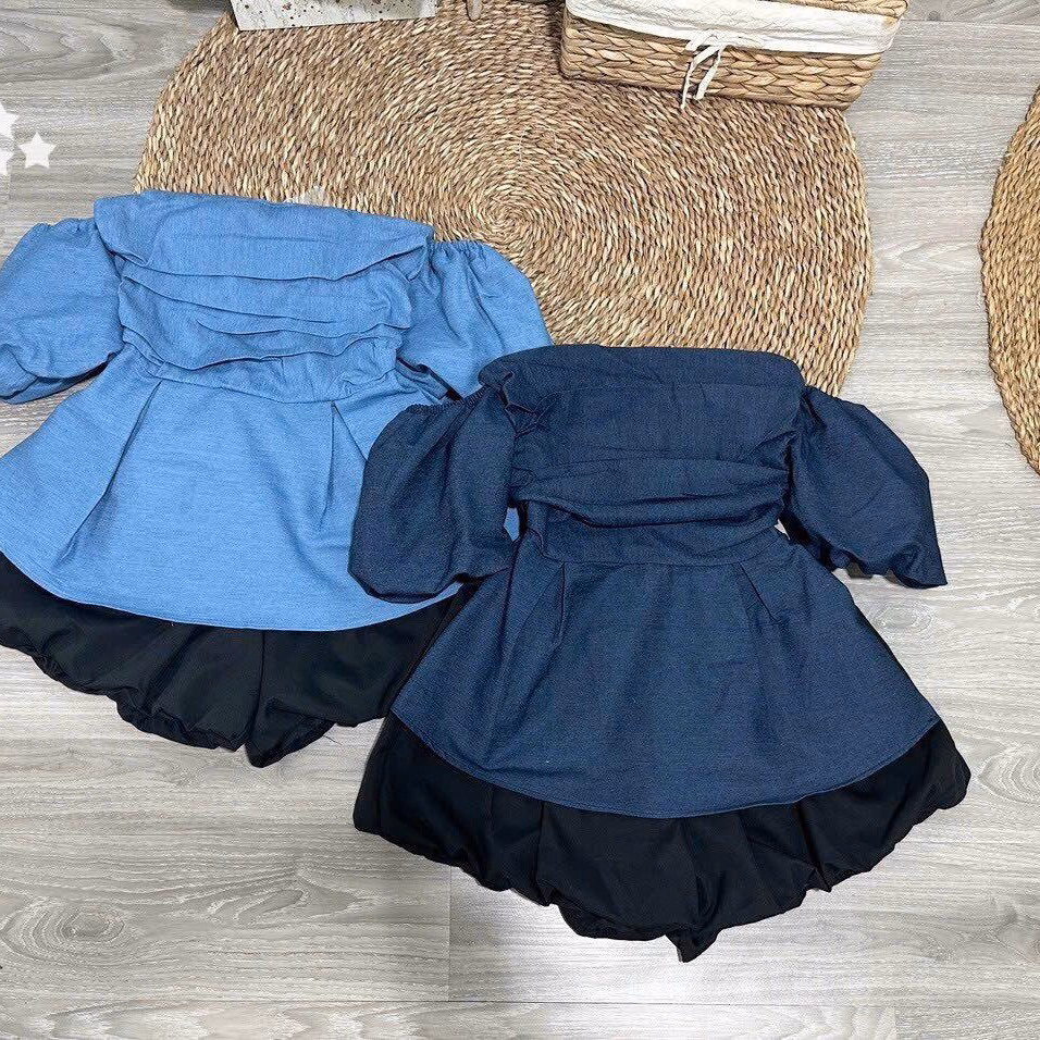 Set Bộ Đồ Nữ Áo Denim Rớt Vai Phối Quần Lụa Sa782 – Sam Store