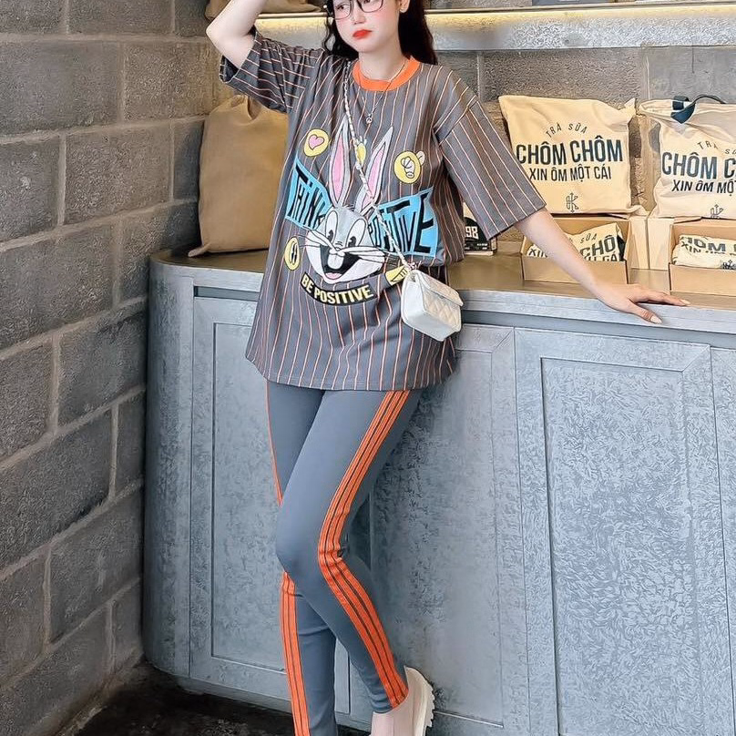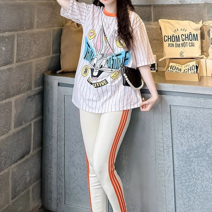 Set Bộ Đồ Nữ Áo Họa Tiết Thỏ Viền Cổ Phối Quần Leeging Dài 3 Sọc Sa801 – Sam Store