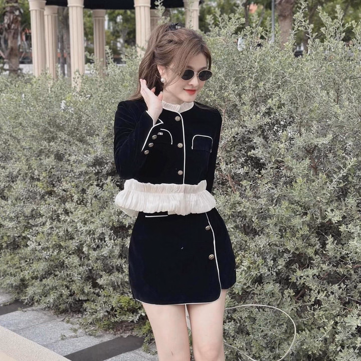Set Bộ Đồ Nữ Áo Nhung Nút Đóng Viền Cổ Bèo Lai Q23- Sam Store