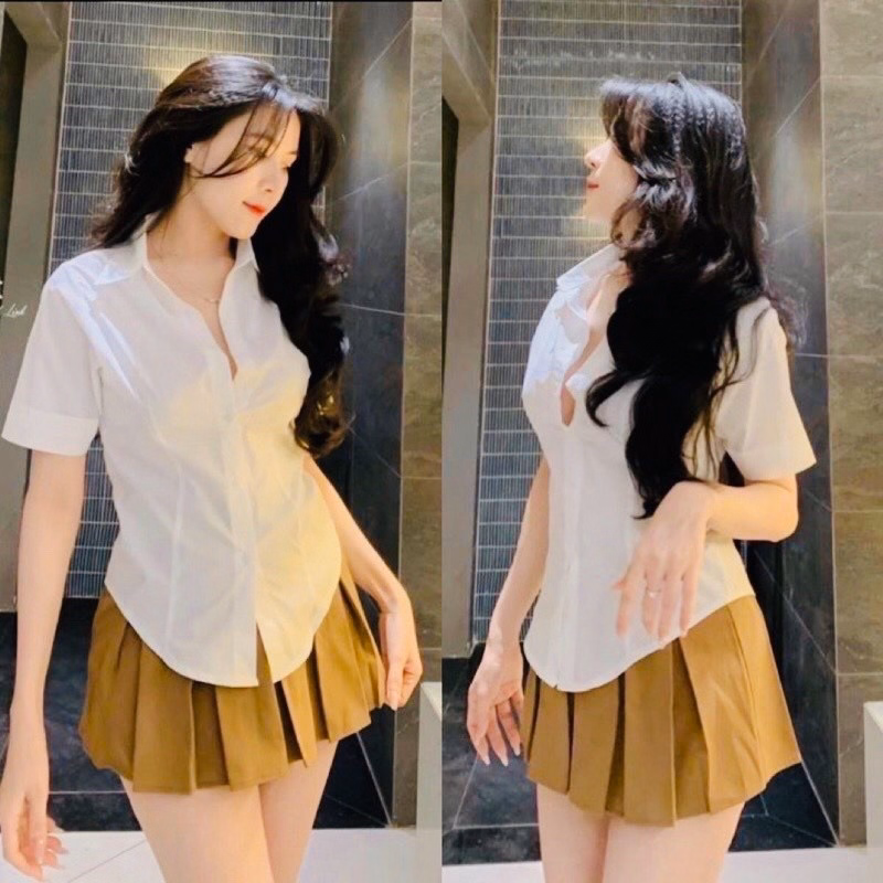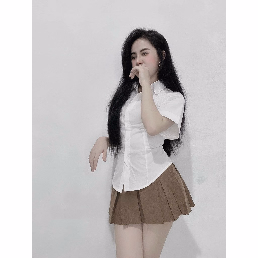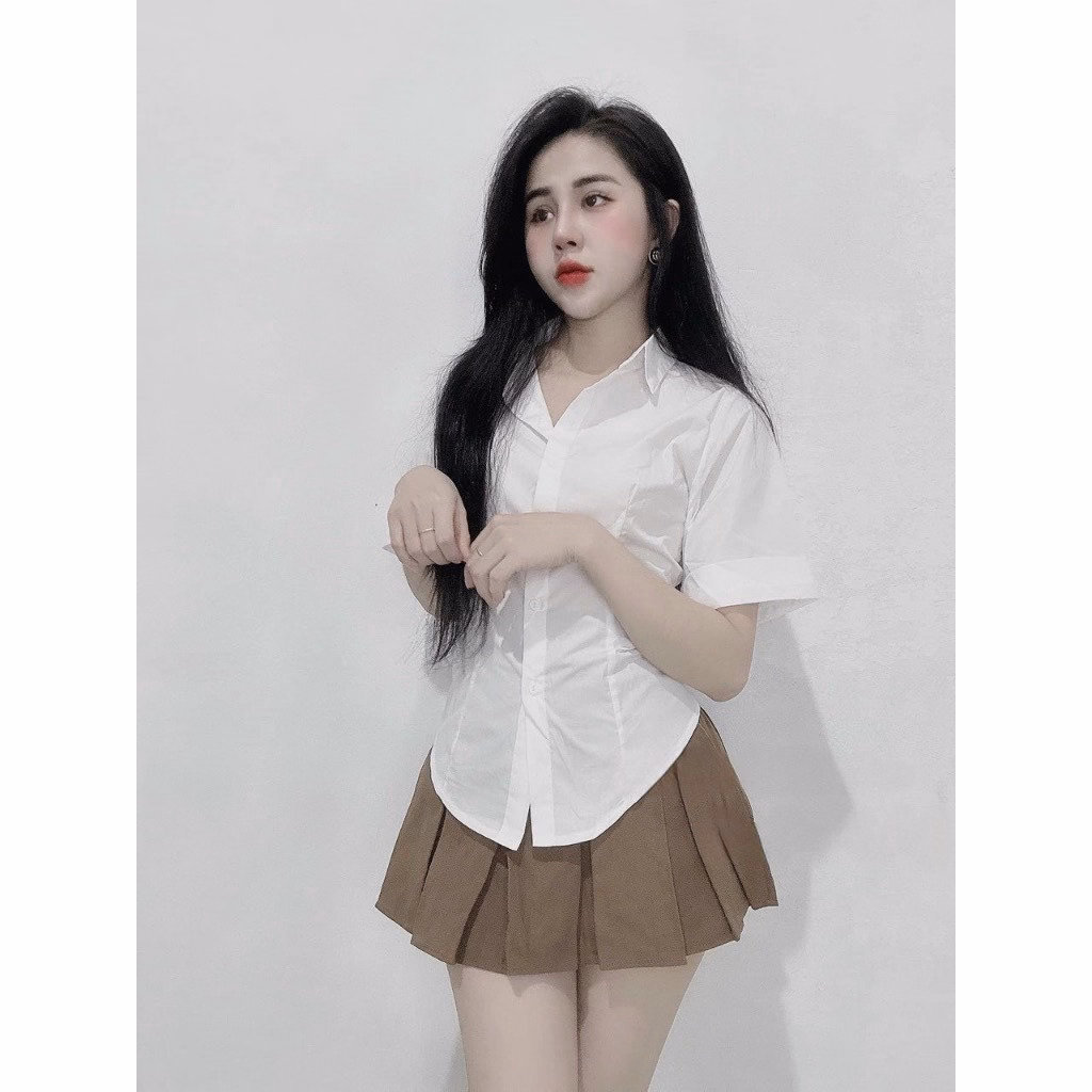 Set Bộ Đồ Nữ Áo Sơ Mi Trắng Ngắn Tay Mix Chân Váy Xếp Ly Bt805 – Nana House
