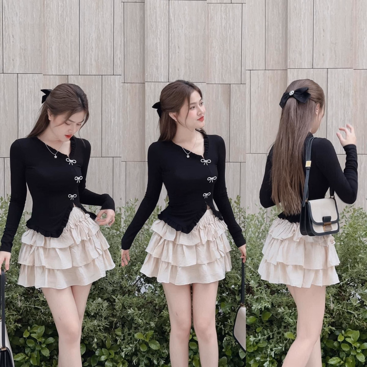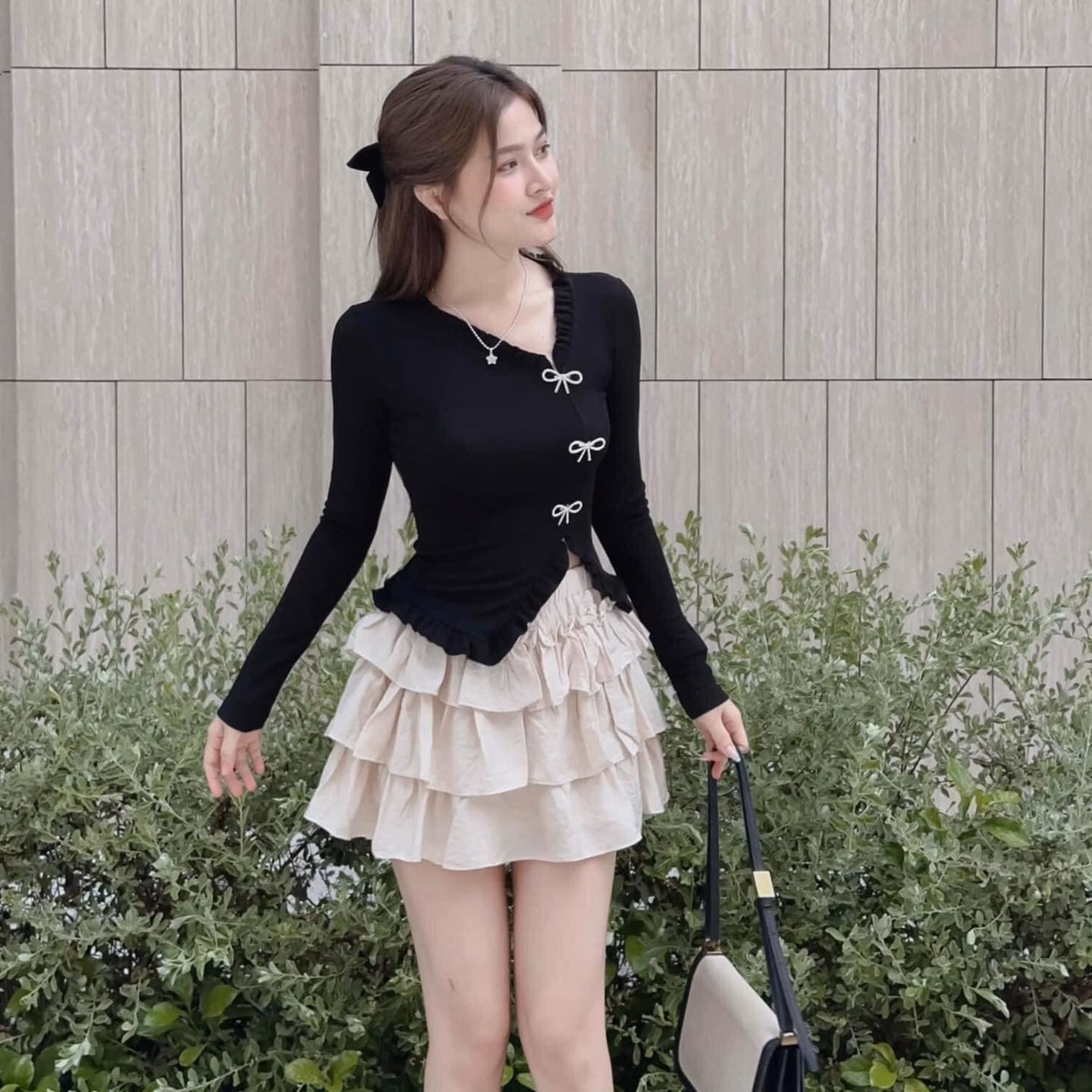 Set Bộ Đồ Nữ Áo Tay Dài Mix Chân Váy Lụa Có Lót Bt854 – Nana Freesize < 53kg Với tone sang chảnh dành cho các nàng diện đi chơi, dự tiệc siêu xinh Kiểu dáng đơn giản,sang trọng,không kén dáng người mặc Thích hợp đi tiệc,cà phê, dạo phố.... V1 ( Vòng ngực): dưới 92cm V2 (Vòng Eo): dưới 78cm V3 : Dưới 92cm ☘ 1m50 – 1m55 từ 40 – 46kg vừa ☘ 1m55 – 1m6 từ 47 – 53kg vừa Chất liệu : Áo Thun Borip - Chân Váy Lụa Xuất xứ : Việt Nam Kích thước : Freesize < 53kg Lưu ý : - Do sự chênh lệch về cài đặt ánh sáng và màn hình,màu sắc của sản phẩm thực tế có sự chênh lệch nhẹ so với thực tế. - Do đo lường thủ công khác nhau,có thể có sai số 1-3cm nhưng trong phạm vi cho phép. - Giặt riêng sản phẩm Mới bằng tay với nước lạnh và phơi khô tự nhiên (tuyệt đối không sử dụng sản phẩm với các loại bột giặt có chất tẩy cao) - Lộn mặt trái trước khi giặt để đảm bảo độ bền màu của sản phẩm. - Quý khách nhận được hàng nếu có thắc mắc vui lòng liên hệ shop trước khi đánh giá sản phẩm.Quý khách nhận được hàng,ưng sản phẩm cho shop xin 1 đánh giá 5 sao kèm hình ảnh sản phẩm nhé. - Một số sản phẩm của shop là hàng Freesize, shop đều ghi rõ số kg, màu sắc,chất liệu đều được cung cấp rõ ràng.Những trường hợp sản phẩm bị lỗi,rách hoặc sản phẩm không giống hình hay kém chất lượng, khách phải cung cấp video khi khui hàng giúp shop nhé.
