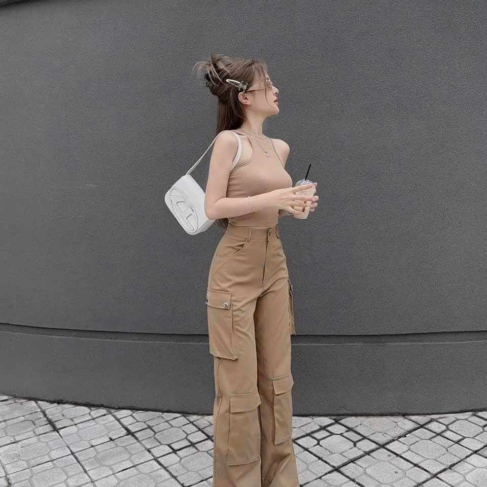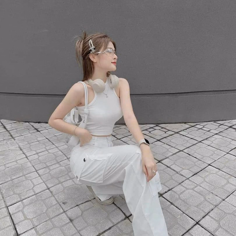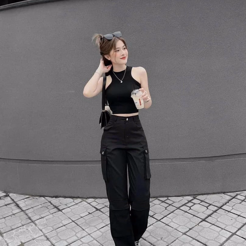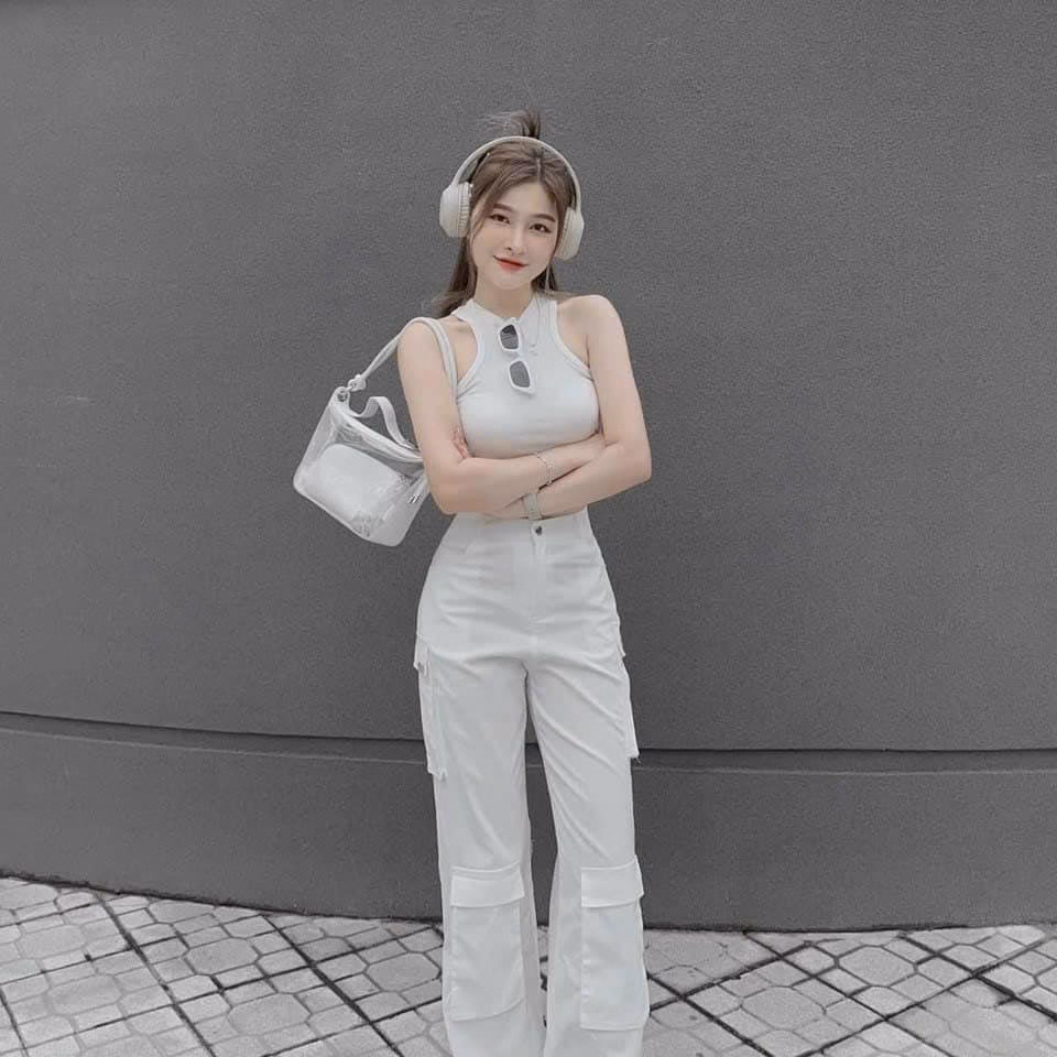 Set Bộ Đồ Nữ Áo Thun Crotop Ba Lỗ Phối Quần Ống Đứng Túi Hộp Dd021 – Nana House