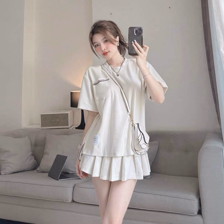 Set Bộ Đồ Nữ Áo Thun Tici Mix Chân Váy Xếp Ly(Có Lót) Bh801 – Nana Freesize < 53kg Kiểu dáng đơn giản, nhẹ nhàng nhưng không kém phần năng động trẻ trung.. - Mùa hè nóng nực diện set này đi chơi ,đi biển hay , cà phê, đều đẹp thoải mái ạ - Chất vải mặc nhẹ nhàng, thoáng mát - Kiểu dáng: đơn giản, năng động,trẻ trung Thông Tin Sản Phẩm: Chất liệu: Thun Tici Size: Freesize < 53kg Tùy Chiều Cao Vòng ngực: 80cm - 100cm. Vòng mông: 90cm - 120cm. Vòng eo: 60cm - 75cm. 1m50 – 1m55 từ 40 – 46kg vừa. 1m55 – 1m6 từ 46 – 52kg vừa. Trên 1m6 từ 51 – 53kg vừa. Xuất xứ: Việt Nam Lưu ý khi sử dụng: - Do sự chênh lệch về cài đặt ánh sáng và màn hình, màu sắc của sản phẩm thực tế có sự chênh lệch nhẹ so với thực tế. - Do đo lường thủ công khác nhau, có thể có sai số 1-3cm nhưng trong phạm vi cho phép. - Giặt riêng sản phẩm mới bằng tay với nước lạnh và phơi khô tự nhiên (tuyệt đối không sử dụng sản phẩm với các loại bột giặt có chất tẩy cao). - Lộn mặt trái trước khi giặt để đảm bảo độ bền màu của sản phẩm. - Quý khách nhận được hàng nếu có thắc mắc vui lòng liên hệ shop trước khi đánh giá sản phẩm.Quý khách nhận được hàng, ưng sản phẩm cho shop xin 1 đánh giá 5 sao kèm hình ảnh sản phẩm nhé. - Một số sản phẩm của shop là hàng Freesize, shop đều ghi rõ số kg, màu sắc, chất liệu đều được cung cấp rõ ràng. - Những trường hợp sản phẩm bị lỗi, rách hoặc sản phẩm không giống hình hay kém chất lượng, khách phải cung cấp video khi khui hàng giúp shop nhé.