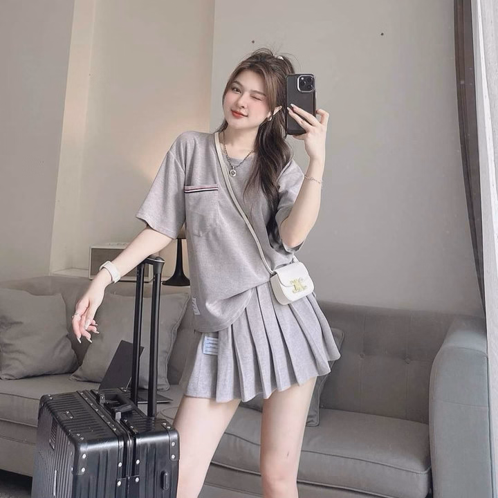 Set Bộ Đồ Nữ Áo Thun Tici Mix Chân Váy Xếp Ly(Có Lót) Bh801 – Nana House