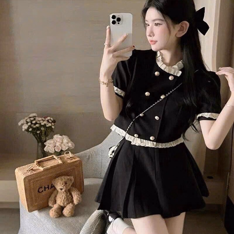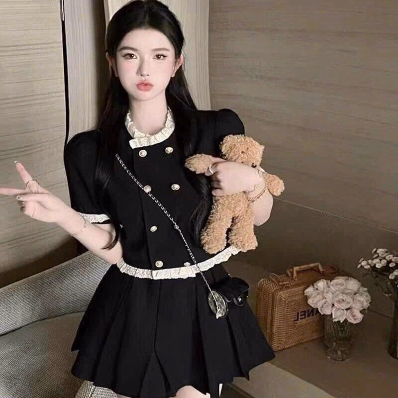 Set Bộ Đồ Nữ Áo Tiểu Thư Đính Nút Phối Chân Váy Ngắn Xòe Sa158 – Sam Store