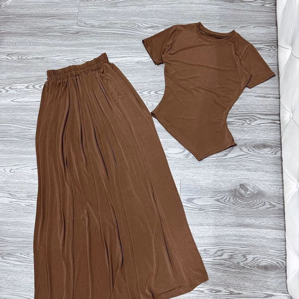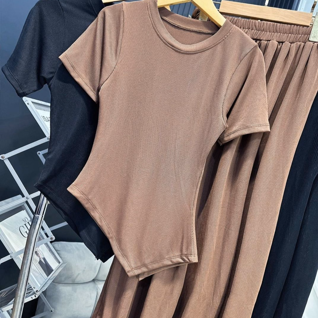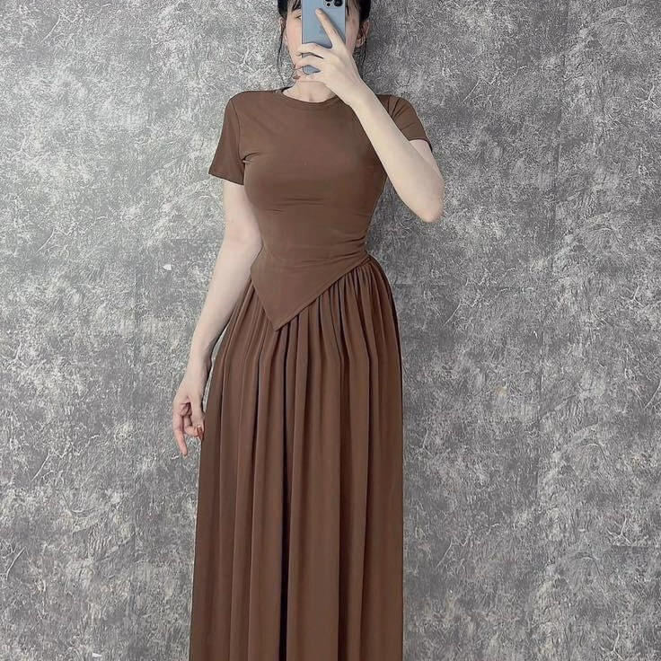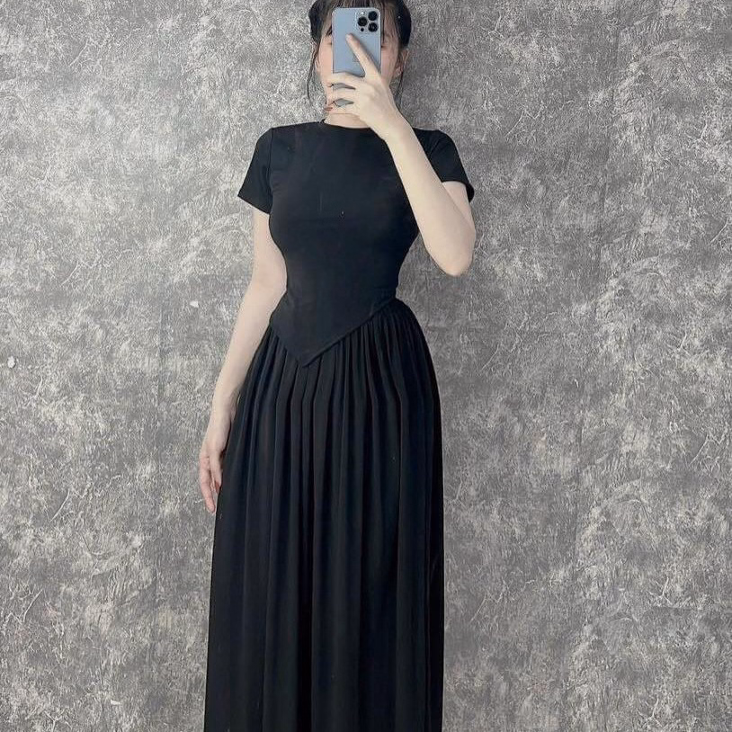 Set Bộ Đồ Nữ Áo Vạt Nhọn Mix Chân Váy Dài Thun Tăm Lạnh Sa858 – Sam Store