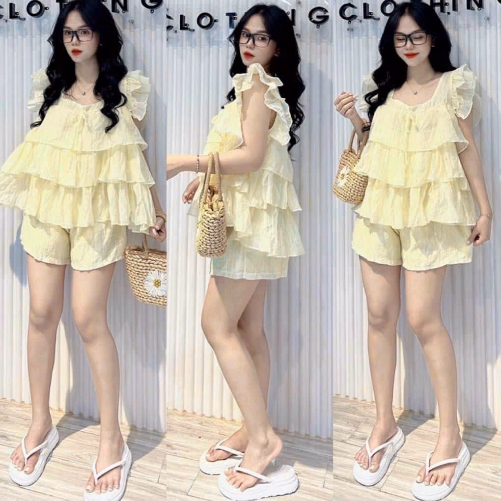 Set Bộ Đồ Nữ Chất Đũi Tay Bèo Áo Xếp Tầng S29- Nana Freesize < 53kg Kiểu dáng đơn giản, nhẹ nhàng nhưng không kém phần năng động trẻ trung.. - Mùa hè nóng nực diện set này đi chơi ,đi biển hay , cà phê, đều đẹp thoải mái ạ - Chất vải mặc nhẹ nhàng, thoáng mát - Kiểu dáng: đơn giản, năng động,trẻ trung ☘ Form: Freesize (40-53kg tùy chiều cao) ☘ V1 ( Vòng ngực): dưới 92cm ☘ V2 (Vòng Eo): dưới 78cm ☘ V3 : Dưới 92cm Chất liệu : Đũi Kích thước : Freesize < 53kg Xuất xứ : Việt Nam Lưu ý : - Do sự chênh lệch về cài đặt ánh sáng và màn hình,màu sắc của sản phẩm thực tế có sự chênh lệch nhẹ so với thực tế. - Do đo lường thủ công khác nhau,có thể có sai số 1-3cm nhưng trong phạm vi cho phép. - Giặt riêng sản phẩm Mới bằng tay với nước lạnh và phơi khô tự nhiên (tuyệt đối không sử dụng sản phẩm với các loại bột giặt có chất tẩy cao) - Lộn mặt trái trước khi giặt để đảm bảo độ bền màu của sản phẩm. - Quý khách nhận được hàng nếu có thắc mắc vui lòng liên hệ shop trước khi đánh giá sản phẩm.Quý khách nhận được hàng,ưng sản phẩm cho shop xin 1 đánh giá 5 sao kèm hình ảnh sản phẩm nhé. - Một số sản phẩm của shop là hàng Freesize, shop đều ghi rõ số kg, màu sắc,chất liệu đều được cung cấp rõ ràng.Những trường hợp sản phẩm bị lỗi,rách hoặc sản phẩm không giống hình hay kém chất lượng,khách phải cung cấp video khi khui hàng giúp shop nhé.