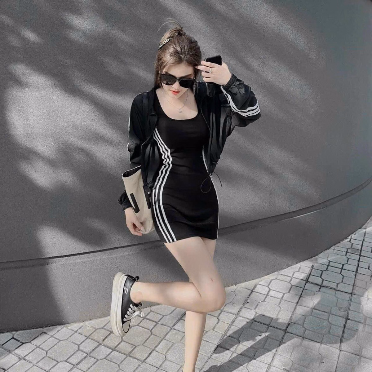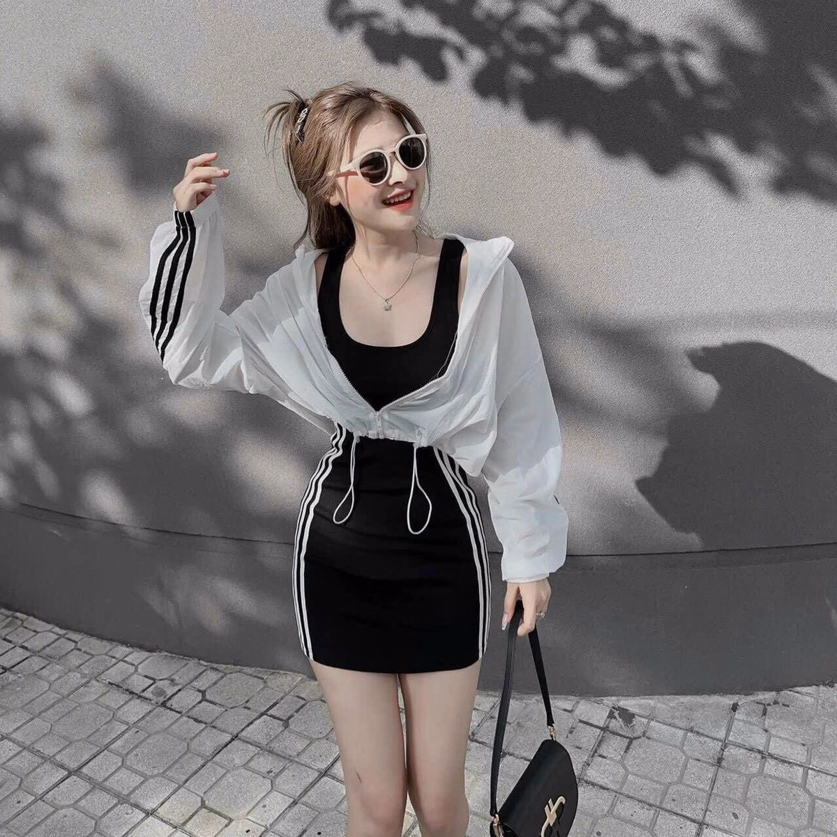 Set Bộ Đồ Nữ Đầm Gân Body Kèm Áo Khoác Dù Sa852 – Sam Store