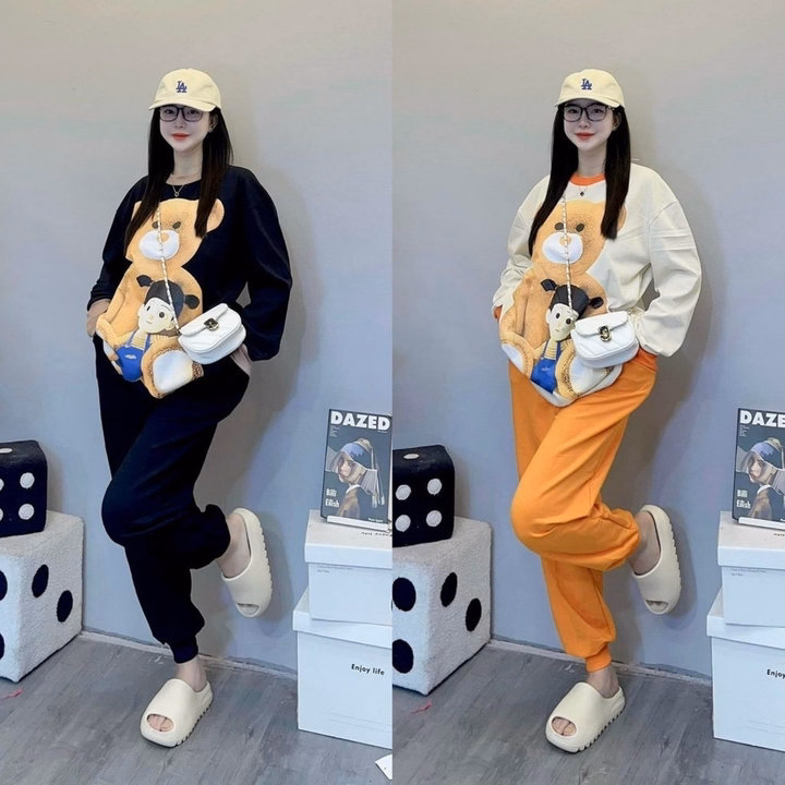 Set Bộ Đồ Nữ Dáng Dài In Gấu Em Bé Dễ Thương Chất Vải Dày Dặn Mềm Mịn -Htm Fashion