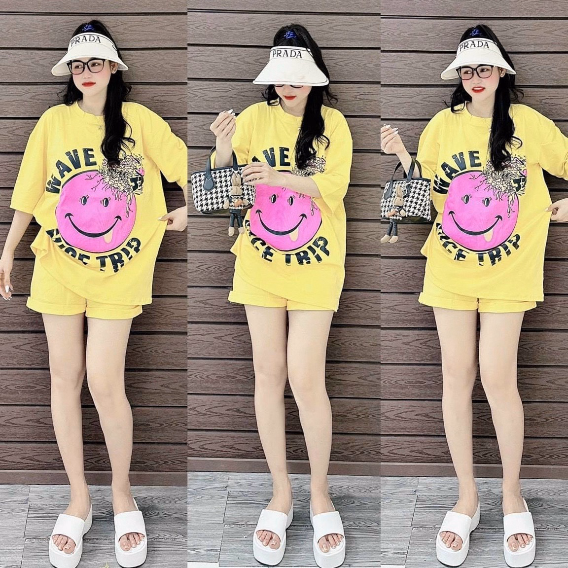 Set Bộ Đồ Nữ Mặc Nhà Form Ngắn Hình Mặt Cười Dd719 – Nana House