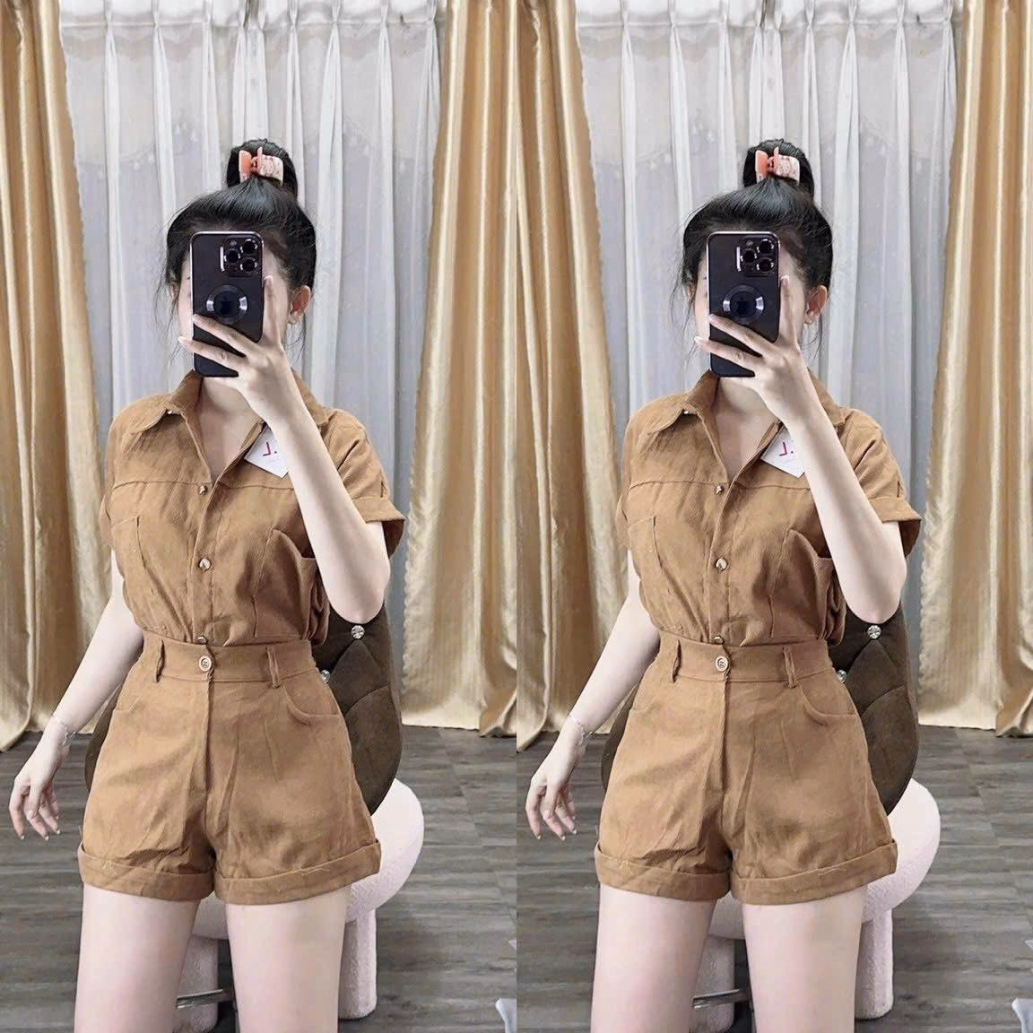 Set Bộ Đồ Nữ Nhung Tăm Áo Sơ Mi Mix Quần Short Lật Lai Sa112 – Sam Freesize < 53kg Với tone sang chảnh dành cho các nàng diện đi chơi, dự tiệc siêu xinh Kiểu dáng đơn giản,sang trọng,không kén dáng người mặc Thích hợp đi tiệc,cà phê, dạo phố.... V1 ( Vòng ngực): dưới 92cm V2 (Vòng Eo): dưới 78cm V3 : Dưới 92cm ☘ 1m50 – 1m55 từ 40 – 46kg vừa ☘ 1m55 – 1m6 từ 47 – 53kg vừa Chất liệu : Nhung Tăm Xuất xứ : Việt Nam Kích thước : Freesize < 53kg Lưu ý : - Do sự chênh lệch về cài đặt ánh sáng và màn hình,màu sắc của sản phẩm thực tế có sự chênh lệch nhẹ so với thực tế. - Do đo lường thủ công khác nhau,có thể có sai số 1-3cm nhưng trong phạm vi cho phép. - Giặt riêng sản phẩm Mới bằng tay với nước lạnh và phơi khô tự nhiên (tuyệt đối không sử dụng sản phẩm với các loại bột giặt có chất tẩy cao) - Lộn mặt trái trước khi giặt để đảm bảo độ bền màu của sản phẩm. - Quý khách nhận được hàng nếu có thắc mắc vui lòng liên hệ shop trước khi đánh giá sản phẩm.Quý khách nhận được hàng,ưng sản phẩm cho shop xin 1 đánh giá 5 sao kèm hình ảnh sản phẩm nhé. - Một số sản phẩm của shop là hàng Freesize, shop đều ghi rõ số kg, màu sắc,chất liệu đều được cung cấp rõ ràng.Những trường hợp sản phẩm bị lỗi,rách hoặc sản phẩm không giống hình hay kém chất lượng,khách phải cung cấp video khi khui hàng giúp shop nhé.
