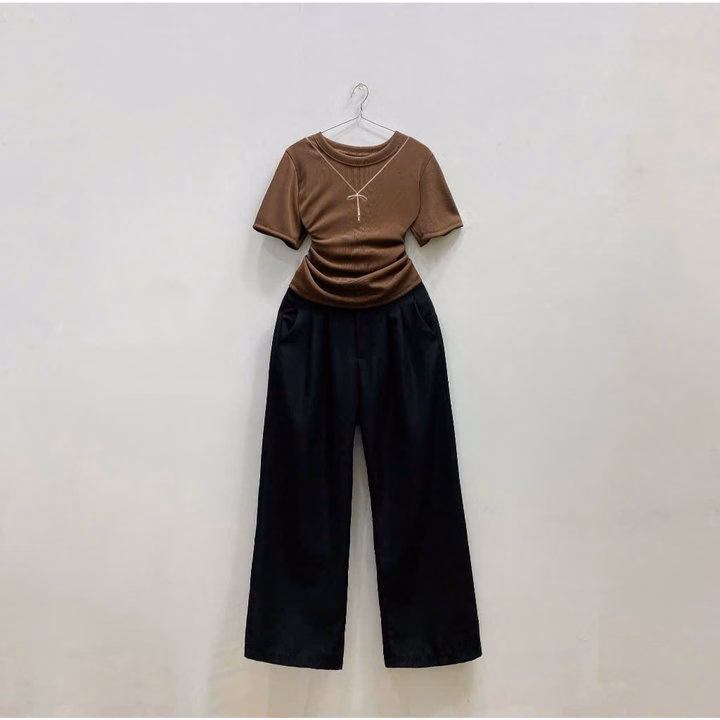 – Tên Sản phẩm: Sét bộ đồ quần kaki Trắng dáng dài 95cm+ mix áo thun tăm croptop trơn dáng ngắn