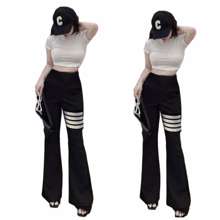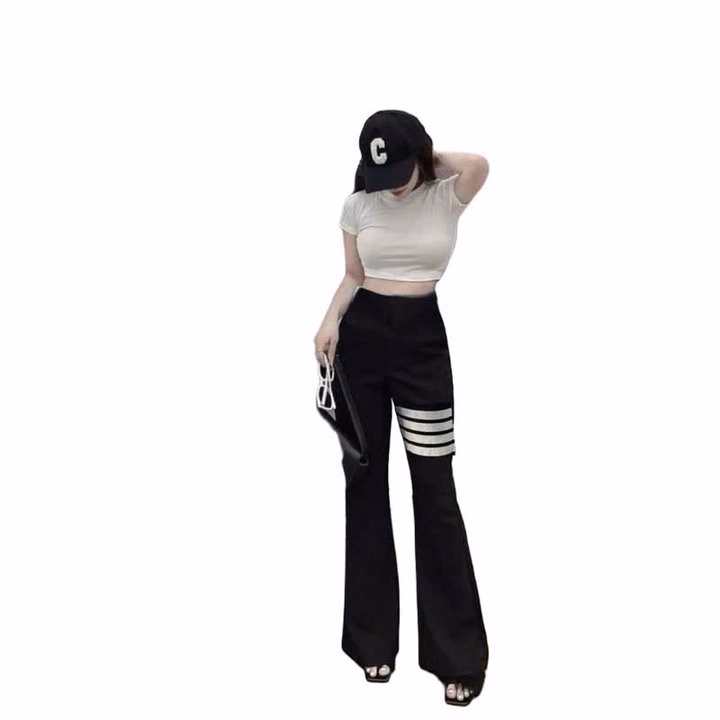 | Màu sắc | mua lẻ quần loe 4 sọc, quần loe 4 sọc + áo croptop đen trơn, quần loe 4 sọc + áo croptop trắng trơn |
