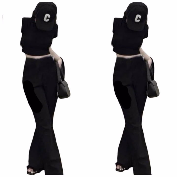 – Tên Sản phẩm: Sét bộ đồ quần ống loe cạp cao co dãn thoải mái + mix áo croptop trơn tăm lạnh form vừa
