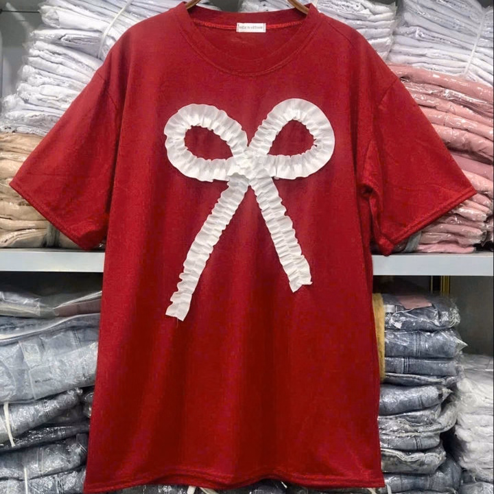 ( Lưu Ý Chất Su Mỏng Mát ) Áo Phông Form Rộng Tay Lỡ Chất Vải Cotton , Áo Cổ Tròn Nam Nữ Unisex – Nơ Loang Hồng