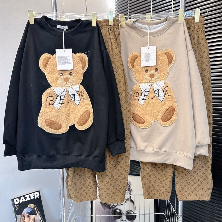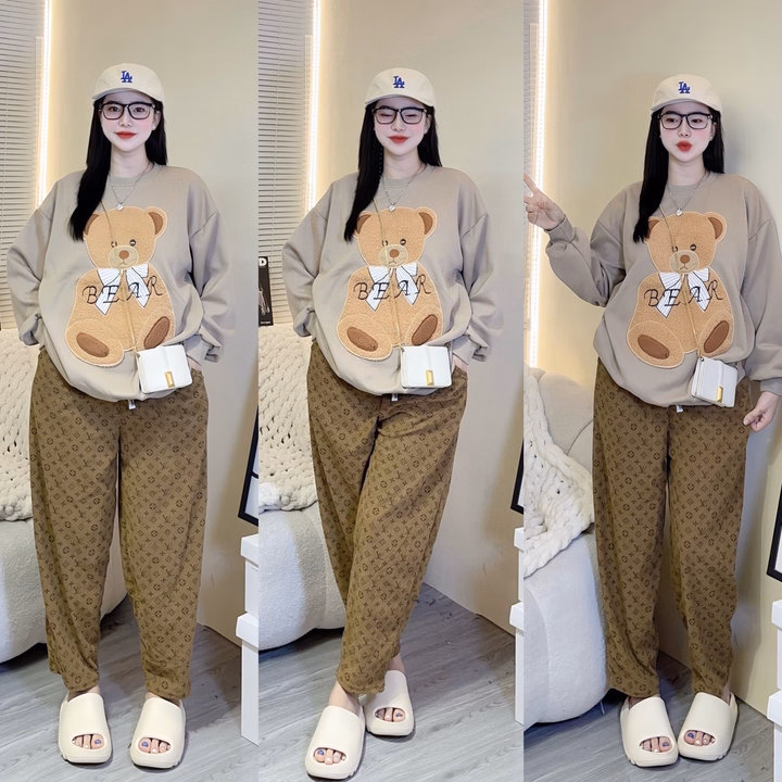Set Bộ Đồ Thun Nỉ Nữ Có In Hình Chú Gấu Phối Kiểu Dễ Thương – Htm Fashion