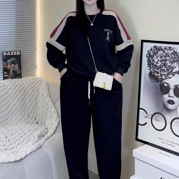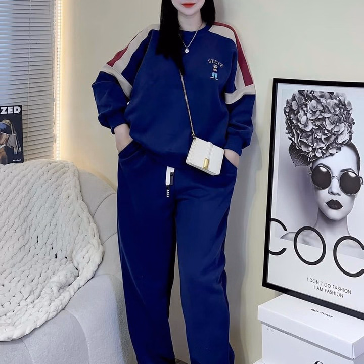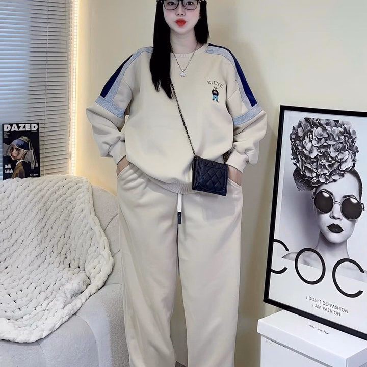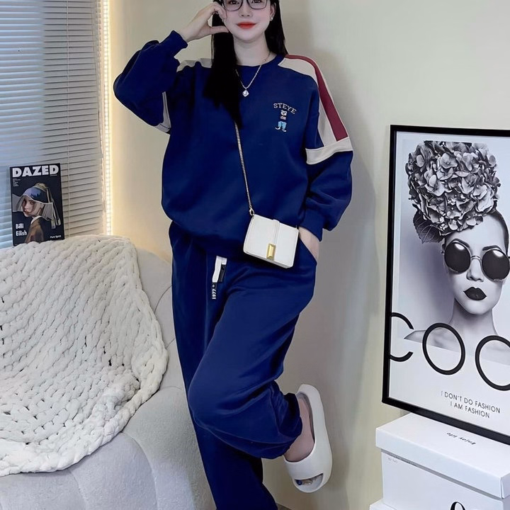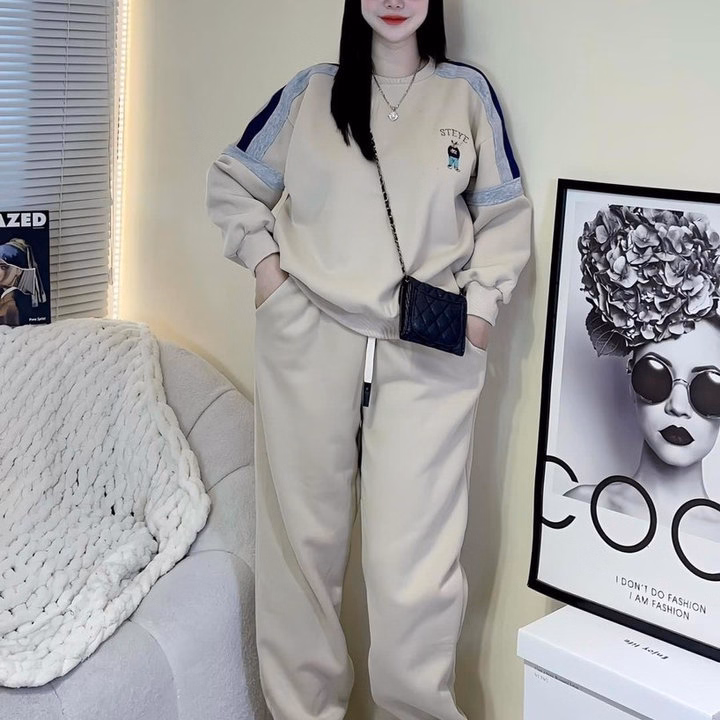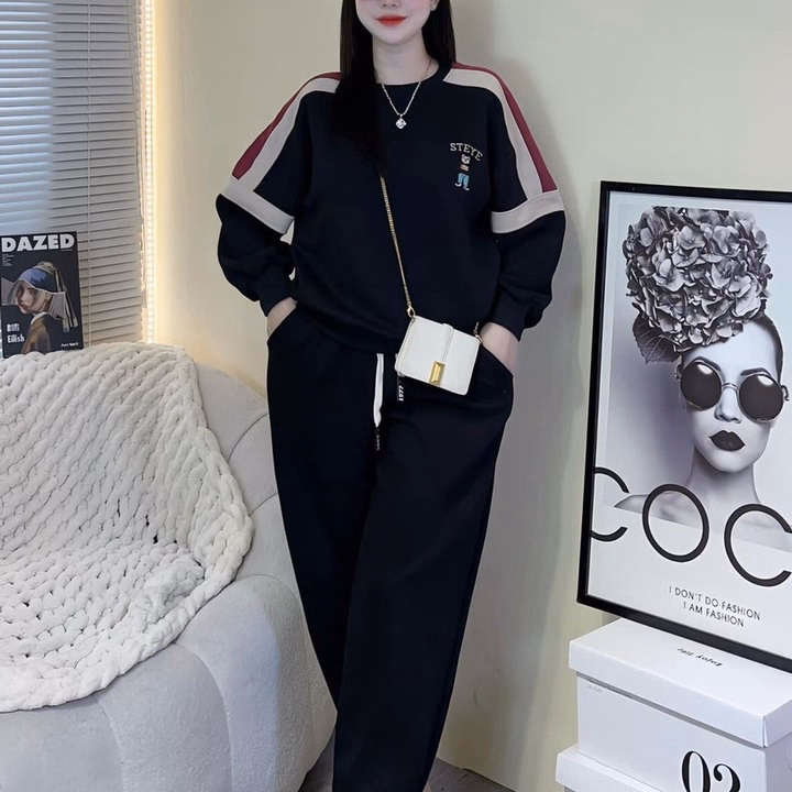 Set Bộ Đồ Thun Nỉ Nữ Có In Hình Chú Gấu Steye Phối Viền Sọc Tay Siêu Đẹp – Htm Fashion