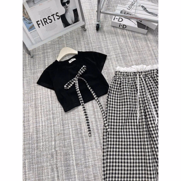 Set Bộ Đũi Caro Áo Tăm Lạnh Gắn Nơ St80F- Sam Store