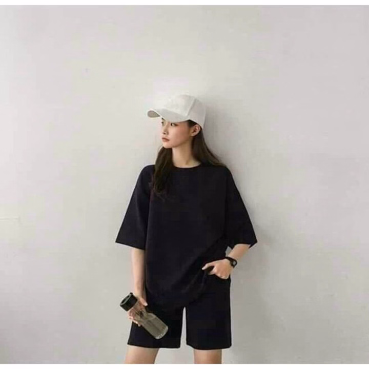 Sét Bộ Đùi Nữ Quần Cotton Su Trơn + Mix Áo Phông Cotton Khô 3158 Trơn Form Unisex
