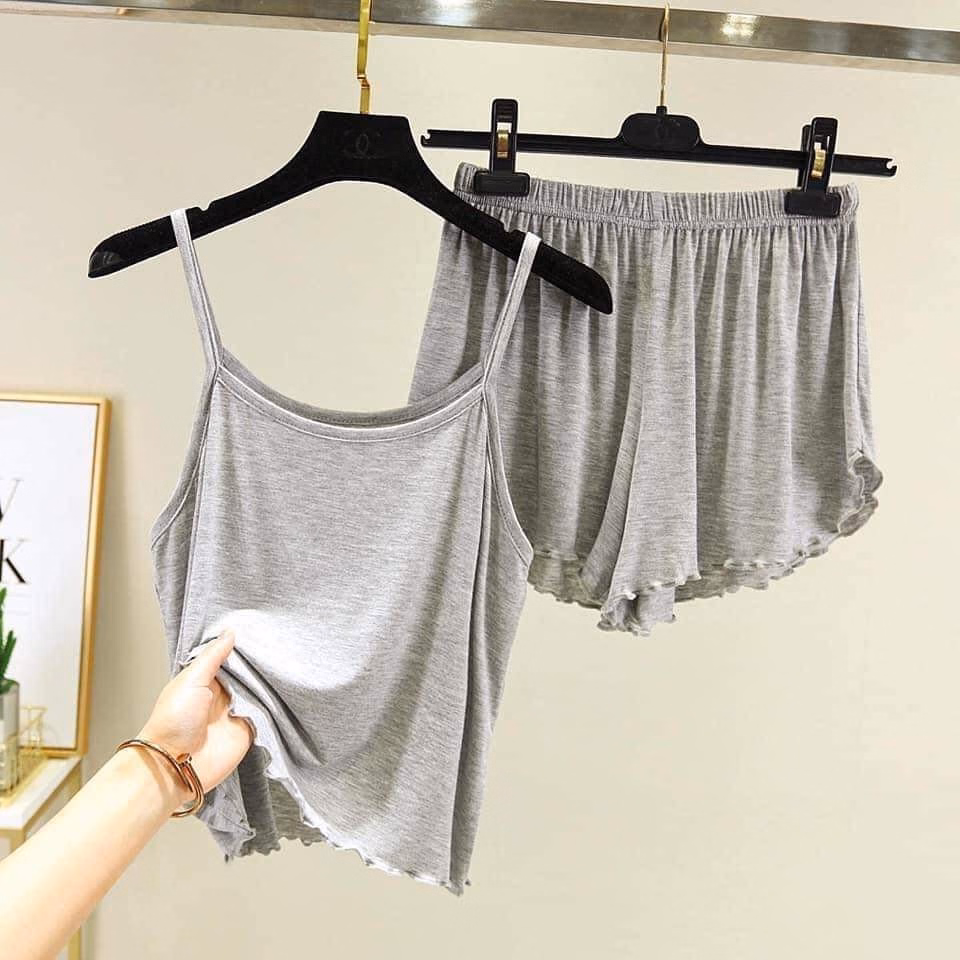 Set Bộ Mặc Nhà Áo 2 Dây Kèm Quần Short Chất Gân Tăm Mềm Mát – Chipxinhxk