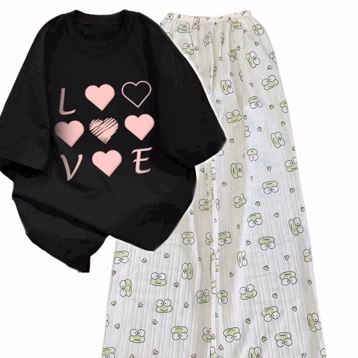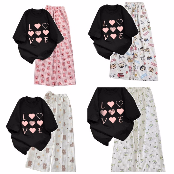 – Tên Sản phẩm: Sét bộ mùa hè quần ếch xanh +mix áo phông form rộng tay lỡ – chữ Love