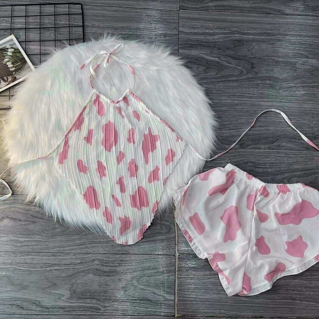 Tên sản phẩm: Set bộ ngủ họa tiết bò sữa chất lụa 100D V207 – Cloudy Dress
