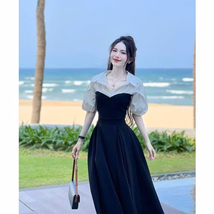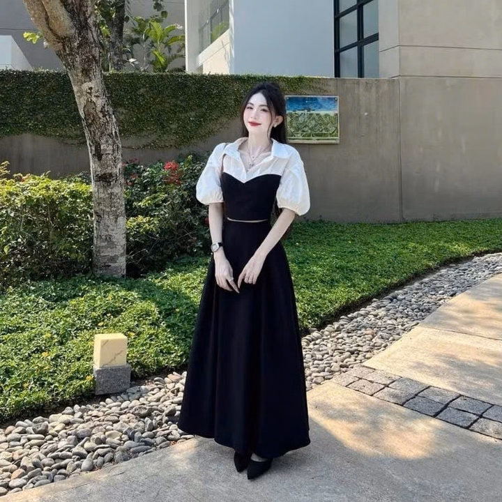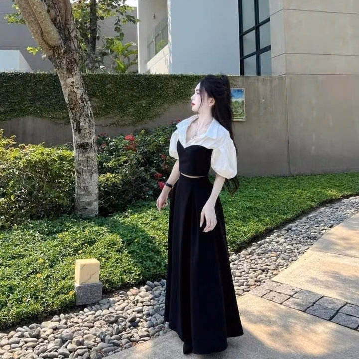Set Bộ Nữ Áo Cổ Sơ Mi Tay Ngắn Phối Chân Váy Xòe Dài Bh90Ju-Nana House