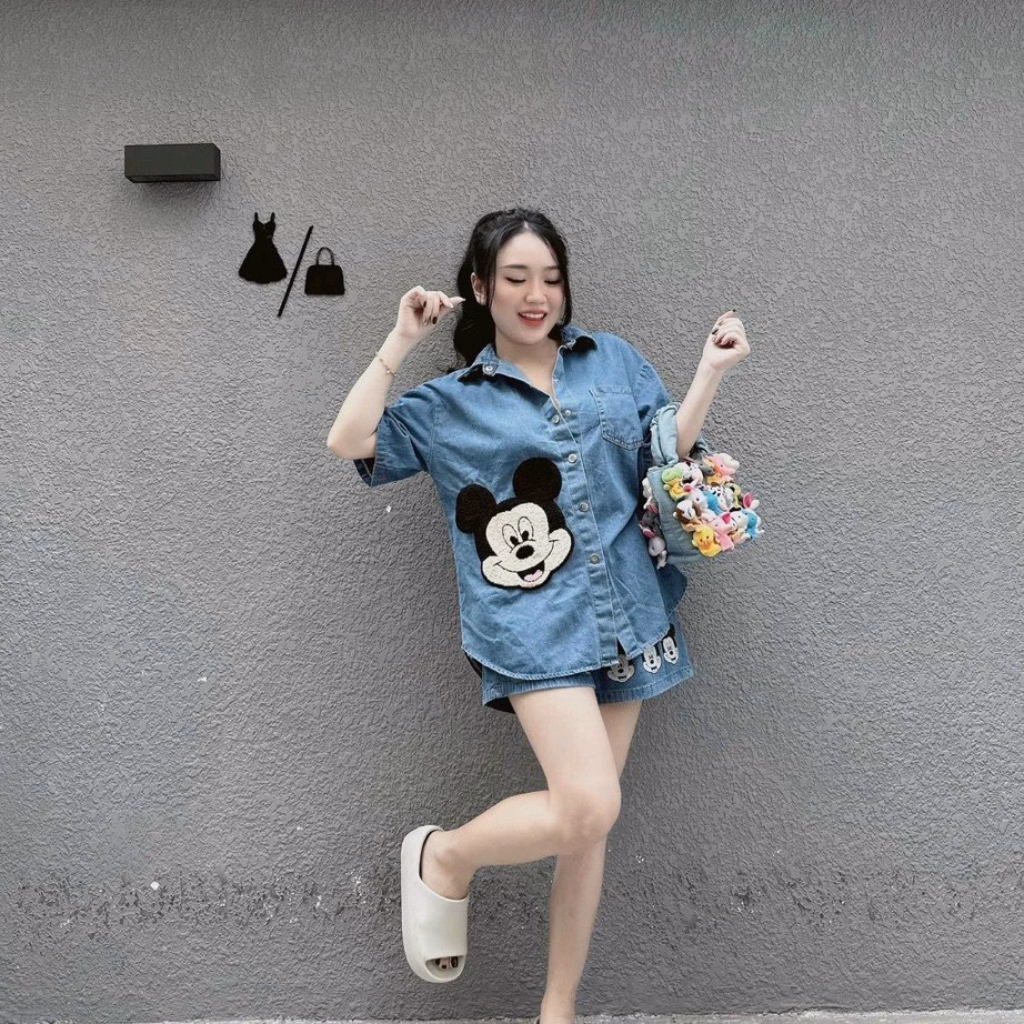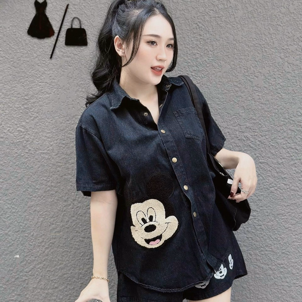 Set Bộ Nữ Áo Sơ Mi Quần Short Jean Mickey Dd401 – Nana House